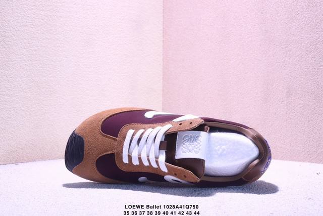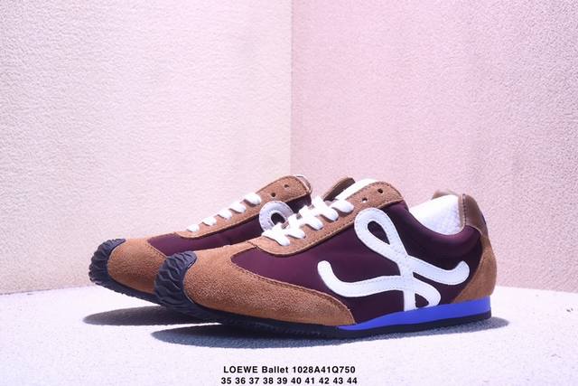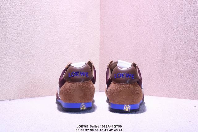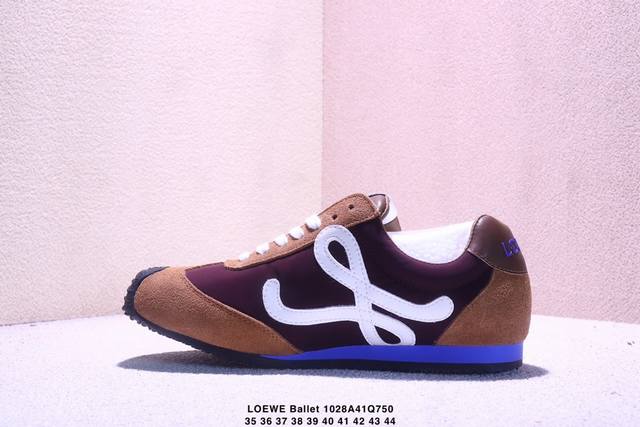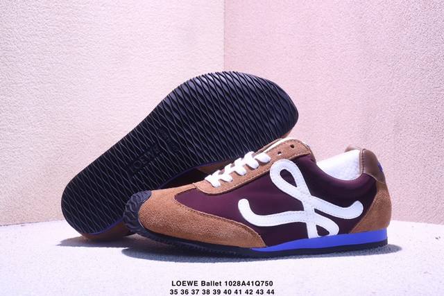 Loewe Ballet Runner 2.0 calfskin round-toe lace-up low-top casual shoes. The new Loewe Ballet Runner 2.0 sneakers have won the favor of the fashion world with their unique design and comfort. The shoe features a playful toe design and an equally innovative, soft, and comfortable heel, hailed as the most comfortable walking shoe of the year. Wearing them feels like walking on flat ground, allowing you to easily enjoy the fun of exercise. The shoe's simple and clean silhouette, low-top design, and the brand's initials on the side reveal the brand's high quality in the details. These shoes are not only comfortable but also highly versatile, showcasing a unique sense of style for both everyday outings and sports occasions. Inspired by ballet flats and 1970s footwear, the perfect combination of retro elements and modern design makes them instantly appealing. Once you wear these Loewe Ballet Runner sneakers, you'll fall in love with them and never want to try any other athletic shoes again. Item Number: L814282X02 Size: As shown in the picture Xm1028Q750