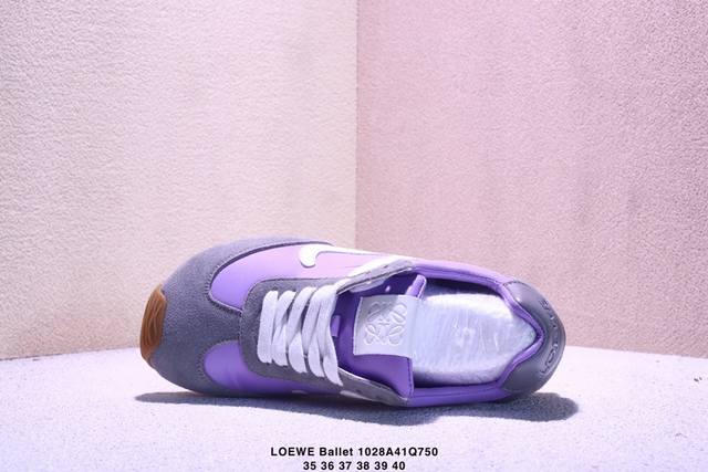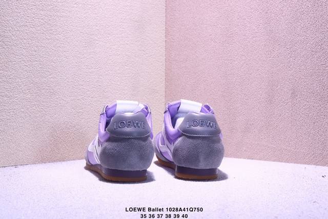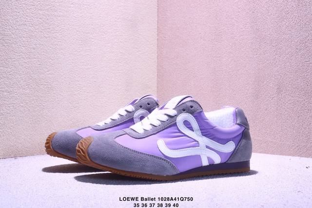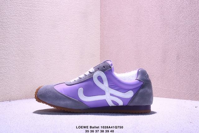 Loewe Ballet Runner 2.0 calfskin round-toe lace-up low-top casual shoes. The new Loewe Ballet Runner 2.0 sneakers have won the favor of the fashion world with their unique design and comfort. The shoe features a playful toe design and an equally innovative, soft, and comfortable heel, hailed as the most comfortable walking shoe of the year. Wearing them feels like walking on flat ground, allowing you to easily enjoy the fun of exercise. The shoe's simple and clean silhouette, low-top design, and the brand's initials on the side reveal the brand's high quality in the details. These shoes are not only comfortable but also highly versatile, showcasing a unique sense of style for both everyday outings and sports occasions. Inspired by ballet flats and 1970s footwear, the perfect combination of retro elements and modern design makes them instantly appealing. Once you wear these Loewe Ballet Runner sneakers, you'll fall in love with them and never want to try any other athletic shoes again. Item Number: L814282X02 Size: As shown in the picture Xm1028Q750