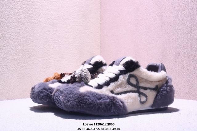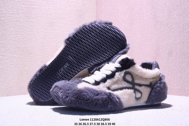 Loewe Ballet Runner 2.0 Sneakers #Asymmetrical toe design, sock-like internal structure, lightweight rubber outsole extending to the toe. #20mm heel with white and matching laces. #L logo on the side, embossed Anagram on the tongue, and injection-molded rubber Loewe logo on the heel tag. #Upgraded original last design. #Handmade construction. #Using suede cowhide with layered leather trim on the upper. #Original high-density scratch-resistant nylon upper for excellent softness. #Double-layer latex cushioning insole. #Lightweight EVA cushioning combined with rubber anti-slip outsole. Sizes: 35-40.50. Xm1128Q866