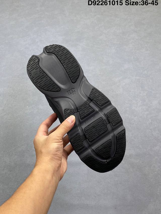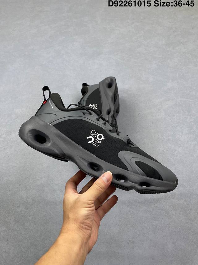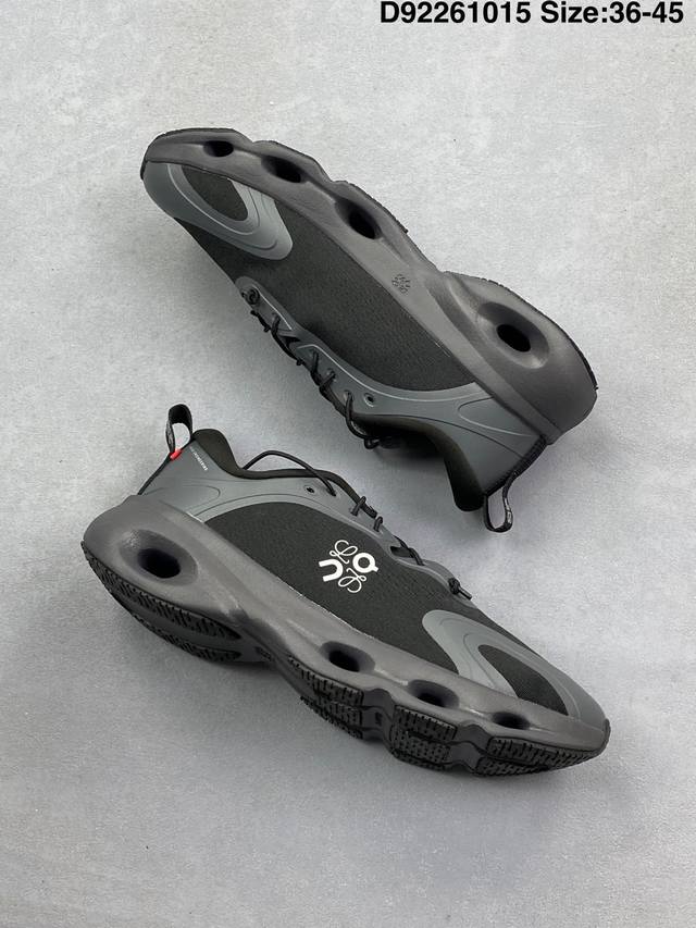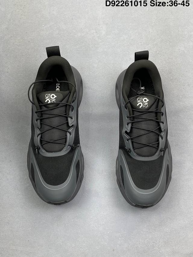 Loewe x On, a new collaboration series of stylish chunky sneakers. This collection, created in partnership with the Swiss high-performance sports brand On, is designed for both urban and outdoor living, showcasing technological quality with a focus on sustainability. The shoes are made from recycled polyester and mesh, featuring an exclusive rubber sole, the classic Loewe logo on the side, and full-coverage welt details. This collaboration combines On's expertise with Loewe's craftsmanship in the shoe's design and manufacturing, specifically tailored for urban living and outdoor activities. Sizes: 36-45 (including half sizes) Code: D92261015