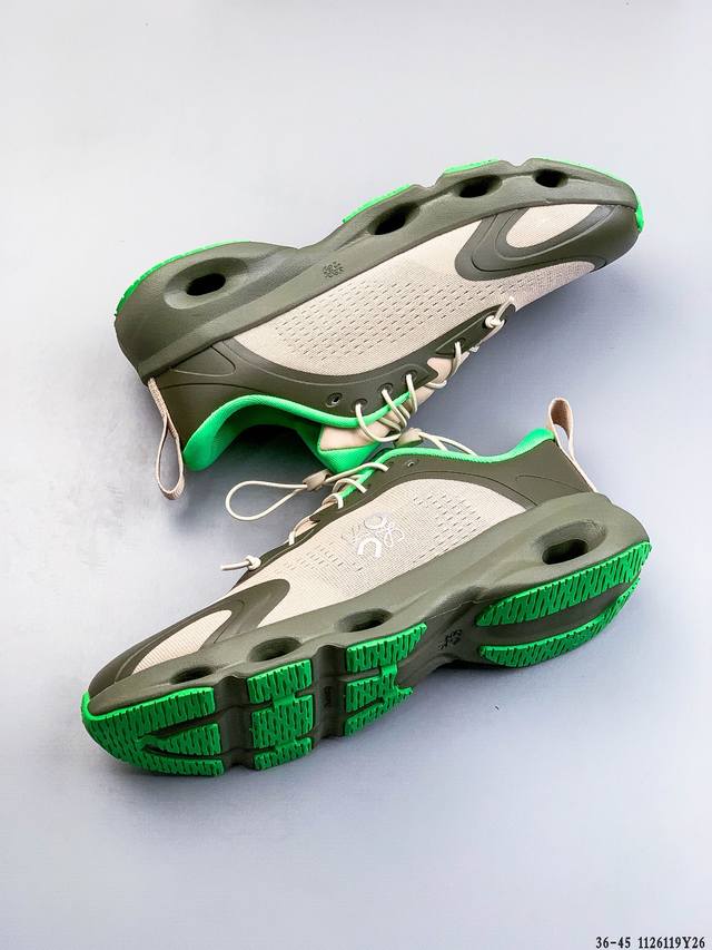 Loewe X On's new Cloudsolo collaboration series of cushioned and breathable casual sneakers. The upper features On's technical mesh fabric, paired with adjustable straps printed with Loewe's classic "pebble" pattern. Collaboration logos are visible throughout the tongue and shoe body. The midsole incorporates On's Cloudtec cushioning technology, combined with Helion super foam and Speedboard structure, ensuring both everyday comfort and sufficient support and rebound. (Model number: 1126119X26)