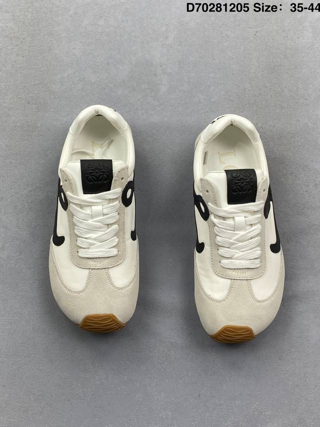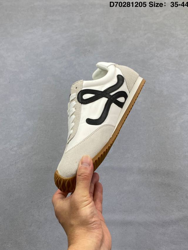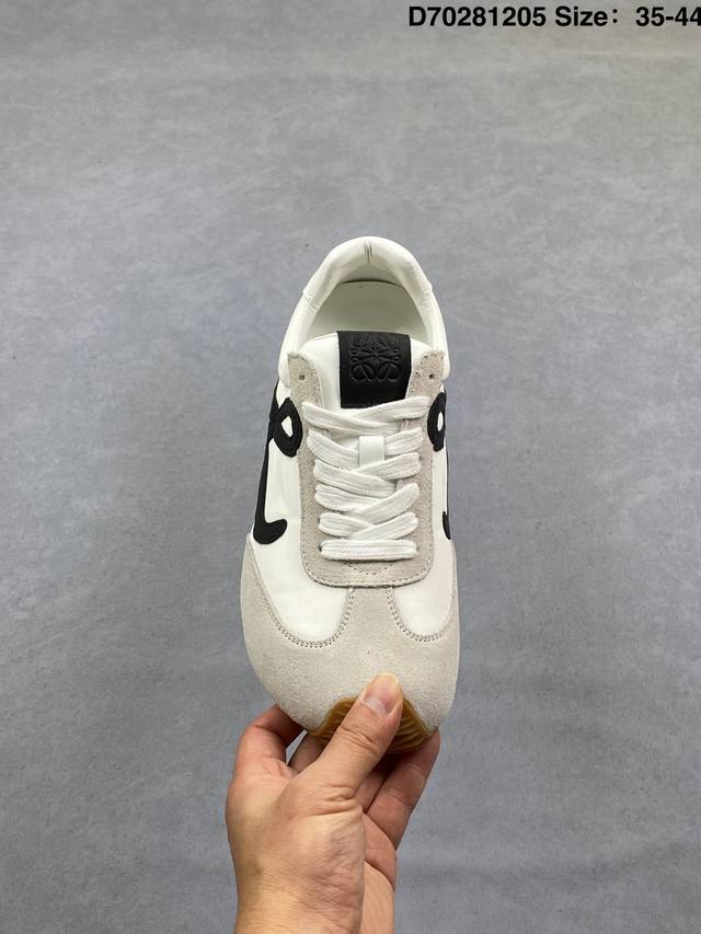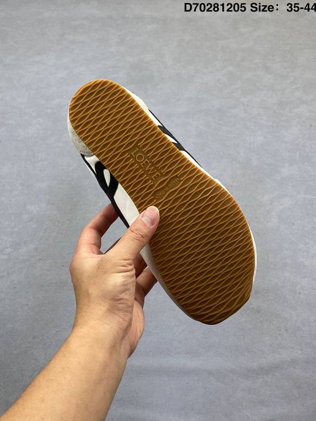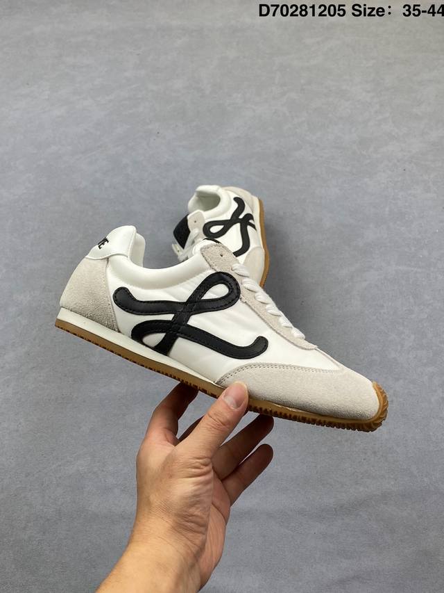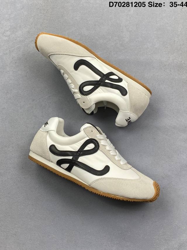 New Product: Loewe Ballet Runner Leather Minimalist Round Toe Lace-up Low-top Sneakers/Casual Shoes (Company Grade) This shoe is the newly released Loewe Ballet Runner 2.0, hailed as a "girl-killer sneaker." Fashion and comfort coexist! Are you also attracted to Loewe's classic Cortez shoes? This shoe is not only stylish but also incredibly comfortable, looking great with any type of pants! This is a hot-selling shoe; its key to its popularity lies in its toe design. Based on the German training shoe, the toe is twisted to form an asymmetrical T-shape, looking very interesting, rounded, and cute. It sold out immediately upon release. Sizes: 35-44 Code: D70281205