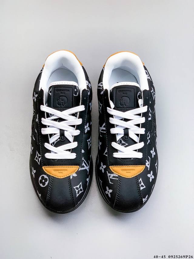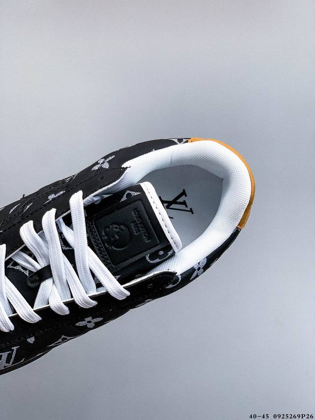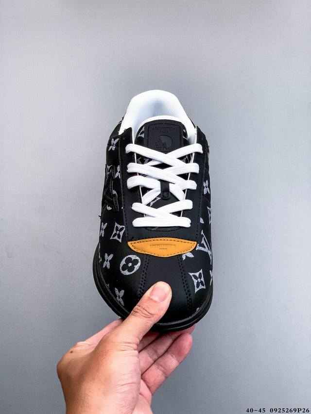 Louis Vuitton x Nigo Buttersoft FW25 Round-toe Lace-Up Low-Top Casual Shoes. These Louis Vuitton LV Buttersoft Nigo collaboration running shoes feature a plain leather embossed pattern, a round-toe lace-up closure, and a padded upper for a soft, comfortable fit. The embossed image of Pharrell Williams and the lobster motif echo the hand-stitched upper, along with an EVAR outsole and LV leather accents.
