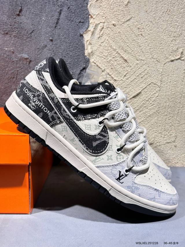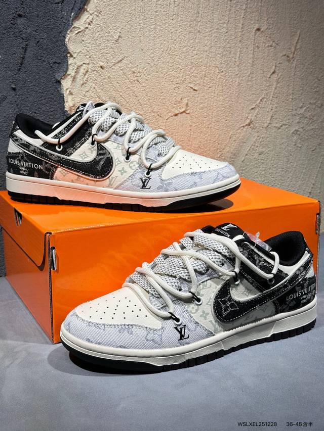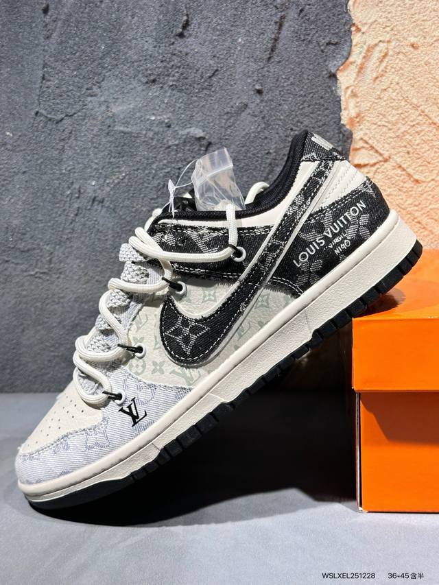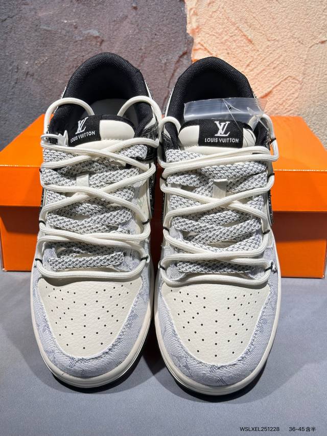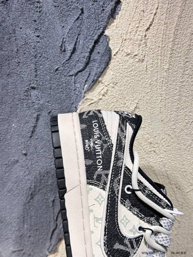 A blockbuster collaboration between luxury and streetwear! AJ1 Low X Louis Vuitton redefines street luxury. When the legendary basketball DNA of the Air Jordan 1 Low meets the high-end craftsmanship of Louis Vuitton, this Cx5050-Y38 collaboration pushes the fusion of street style and top-tier luxury aesthetics to a new peak! The shoe features a black and gray color-blocked suede design, with a large area of Louis Vuitton's classic light green monogram pattern on the side, subtly revealing its luxury brand identity. The black Swoosh paired with the red Louis Vuitton lettering on the toe creates a striking red and black contrast, instantly igniting visual tension. The red leather accents and handwritten Louis Vuitton lettering on the heel complete the collaboration with meticulous attention to detail. Black and white woven laces paired with a distressed off-white midsole retain the retro streetwear feel of the AJ1 Low while Louis Vuitton's exquisite design gives the shoe a collector's item level of luxury. The exclusive style code Cx5050-Y38 further solidifies its status as a collector's item. As a major collaboration between Air Jordan and Louis Vuitton, these shoes are not only trendy footwear but also artistic collectibles that blend luxury and streetwear. Whether you're creating a high-end street style look or adding them to your shoe collection as a must-have item, this AJ1 Low X Louis Vuitton collaboration will make you stand out in the fashion world, truly the ultimate answer to wearing luxury on your feet! Sizes: 36 36.5 37.5 38 38.5 39 40 40.5 41 42 42.5 43 44 45 Wslxel2512 28 DDD
