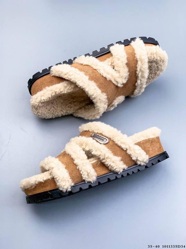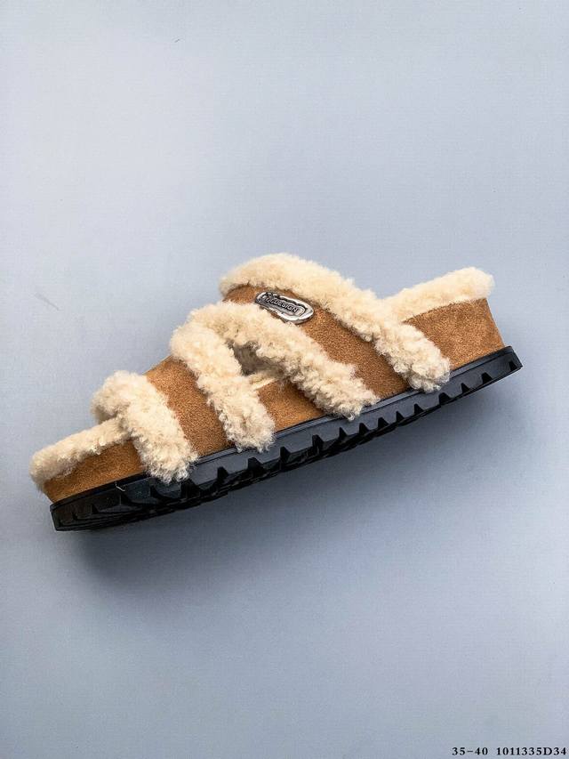 Company Grade! Gg-Cc 2025 Louis Warm Tea Autumn/Winter New Style 5.5cm Thick Sole Height Increasing Versatile Birkenstock Slippers