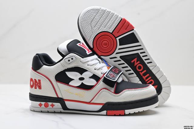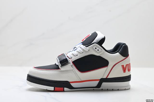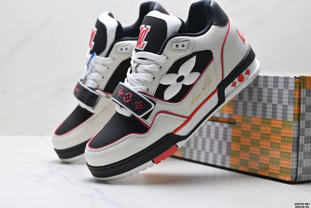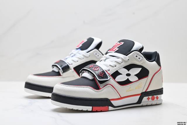 Company Grade Louis Vuitton Trainer Sneaker Low. A versatile and comfortable sneaker with a non-slip sole, its versatility makes it a staple in the fashion world. Perfected details include a soft leather upper, an exclusive molded sole, and a 3D-printed iconic logo on the side, exuding aristocratic style. Comes with authentic packaging. Sizes: 36-46. ID: Jhd129-Qej