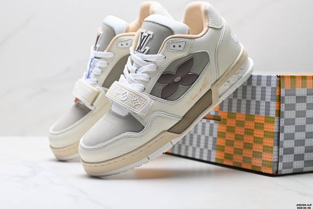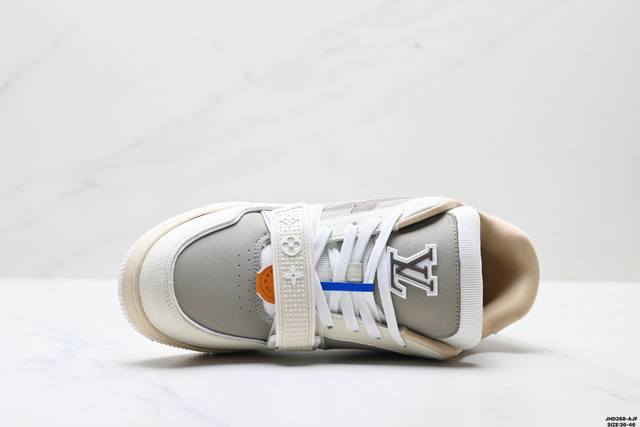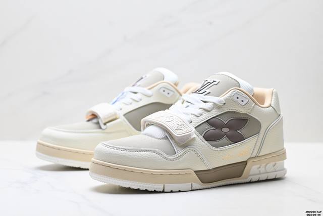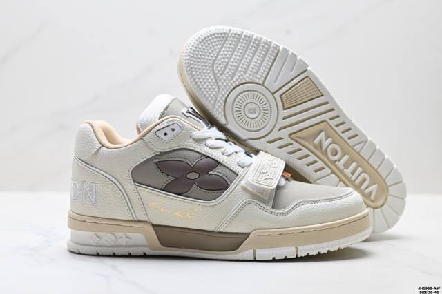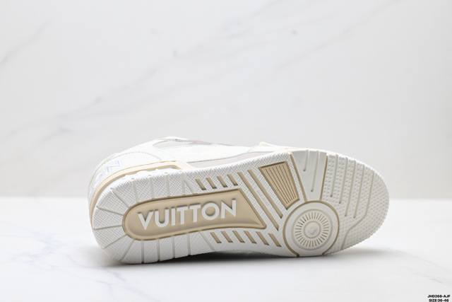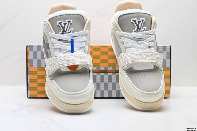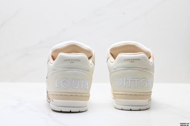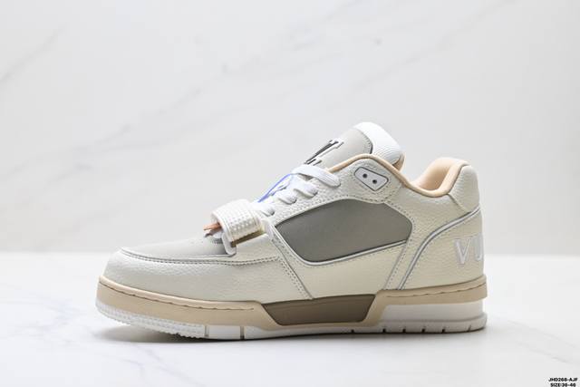 Company Grade Louis Vuitton Trainer Sneaker Low. A versatile and comfortable sneaker with a non-slip sole, perfect for any fashion and entertainment industry. Details meticulously refined for a perfect fit. The upper is made of soft leather with an exclusive mold. The outsole features a 3D-printed iconic logo on the side, exuding aristocratic style. Comes with authentic packaging. Sizes: 36-46. ID: Jhd268-Ajf.