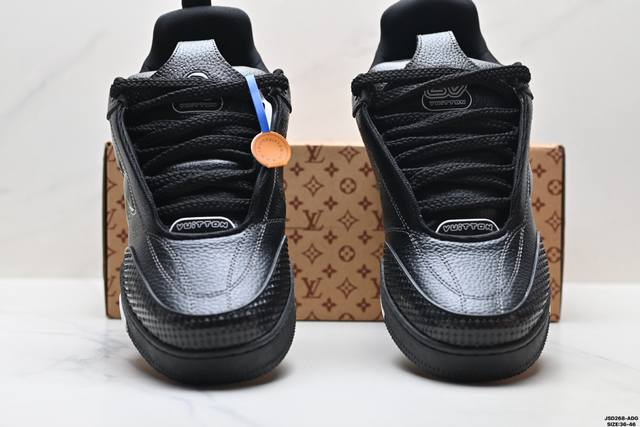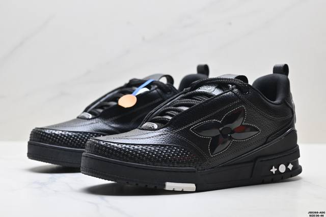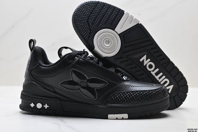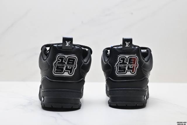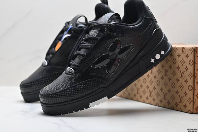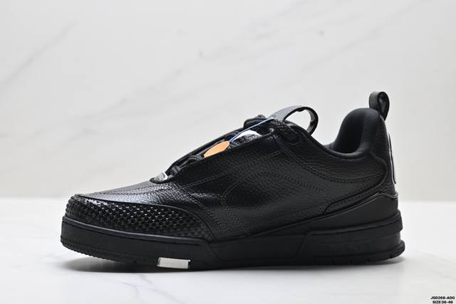 Company Grade Louis Vuitton Trainer Sneaker Low. A versatile and comfortable sneaker with a non-slip sole, perfect for any fashion and entertainment industry. Details meticulously refined for a perfect fit. The upper is made of soft leather with an exclusive mold. The outsole features a 3D-printed iconic logo on the side, exuding aristocratic style. Comes with authentic packaging. Sizes: 36-45. ID: Jsd129-Adg.