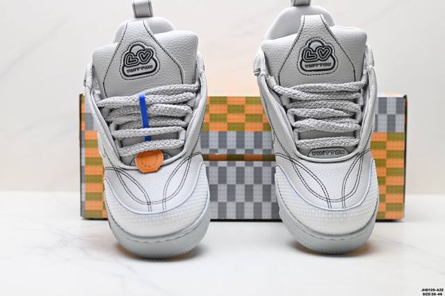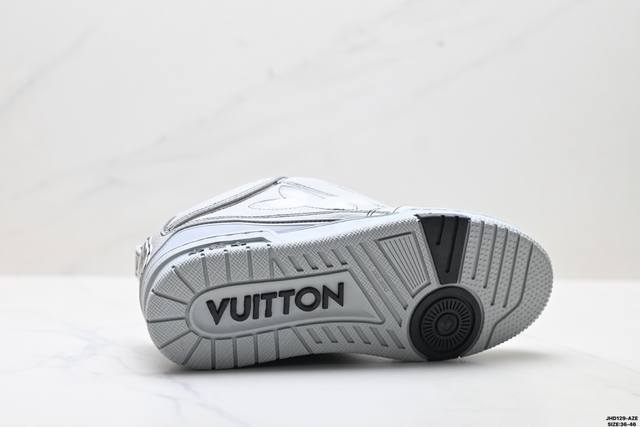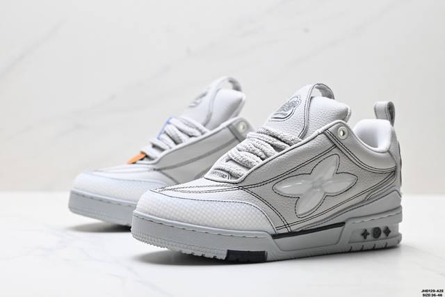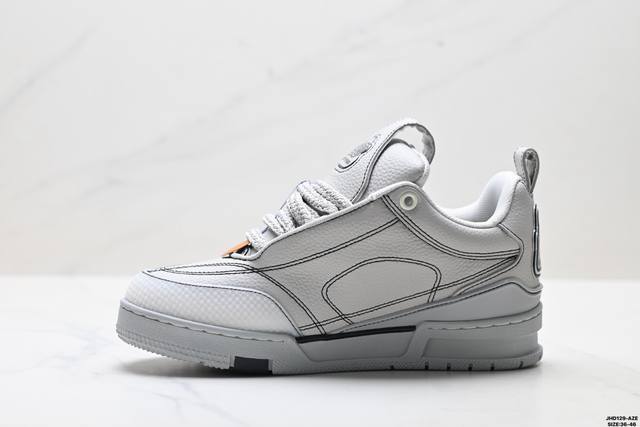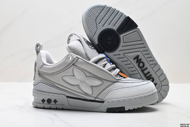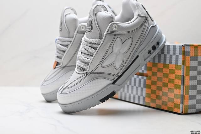 Company Grade Louis Vuitton Trainer Sneaker Low. A versatile and comfortable sneaker with a non-slip sole, perfect for any fashion and entertainment industry. Details meticulously refined for a perfect fit. The upper is made of soft leather with an exclusive mold. The outsole features a 3D-printed iconic logo on the side, exuding aristocratic style. Comes with authentic packaging. Sizes: 36-46. ID: Jhd129-Aze.