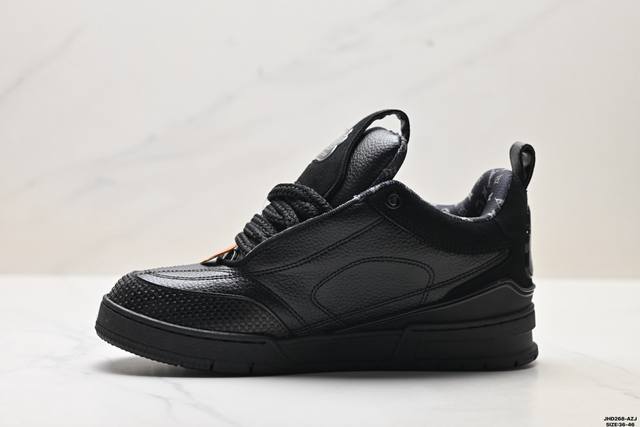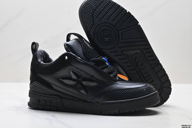 Company Grade Louis Vuitton Trainer Sneaker Low. A versatile and comfortable sneaker with a non-slip sole, perfect for any fashion and entertainment industry. Details meticulously refined for a perfect fit. The upper is made of soft leather with an exclusive mold. The outsole features a 3D-printed iconic logo on the side, exuding aristocratic style. Comes with authentic packaging. Sizes: 36-46. ID: Jhd268-Azj.