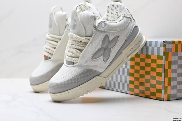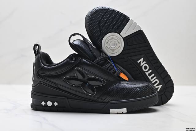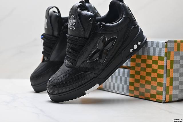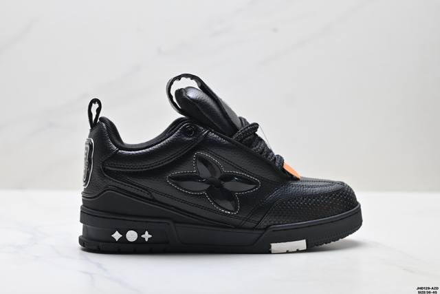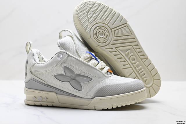 Company Grade Louis Vuitton Trainer Sneaker Low. A versatile and comfortable sneaker with a non-slip sole, perfect for any fashion and entertainment industry. Details meticulously refined for a perfect fit. The upper is made of soft leather with an exclusive mold. The outsole features a 3D-printed iconic logo on the side, exuding a noble and fashionable aura. Comes with authentic packaging. Sizes: 36-46. ID: Jhd129-Az.