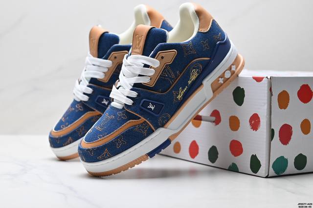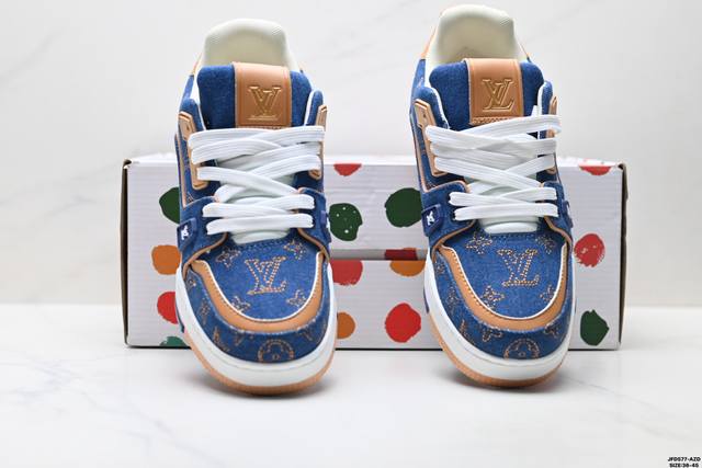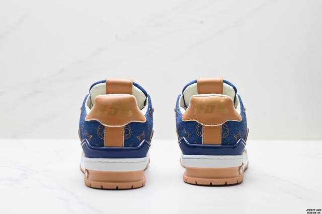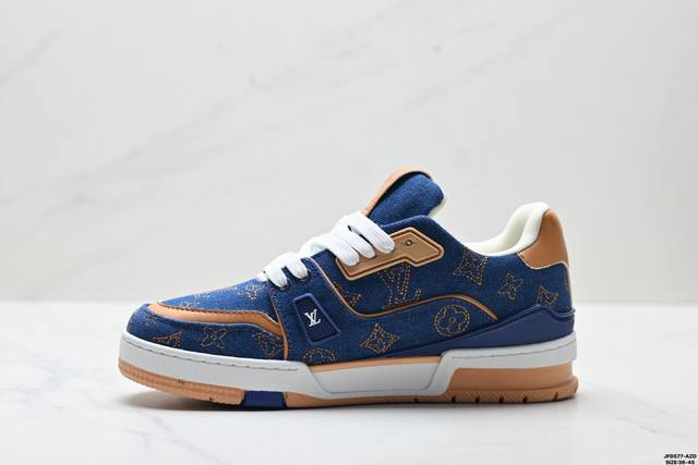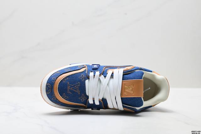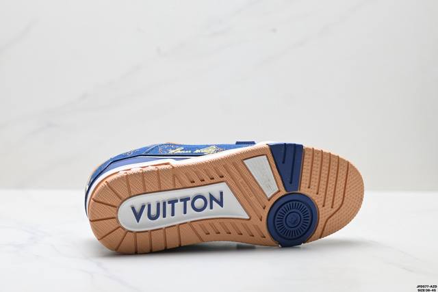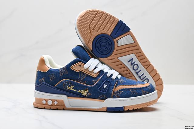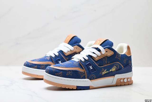 Company Grade Louis Vuitton Trainer Sneaker Low. A versatile and comfortable sneaker with a non-slip sole, perfect for any fashion and entertainment industry. Details meticulously refined for a perfect fit. The upper is made of soft leather with an exclusive mold. The outsole features a 3D-printed iconic logo on the side, exuding aristocratic style. Comes with authentic packaging. Sizes: 36-45. ID: Jfd577-Az.