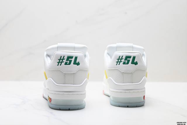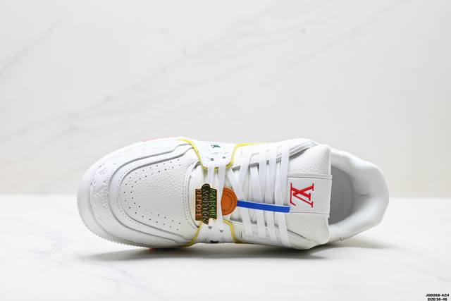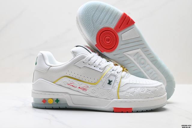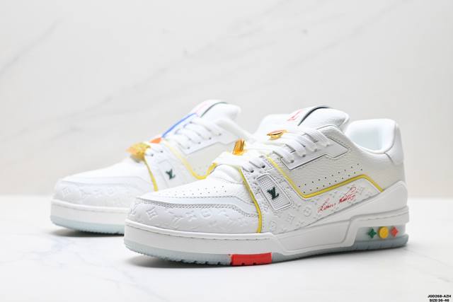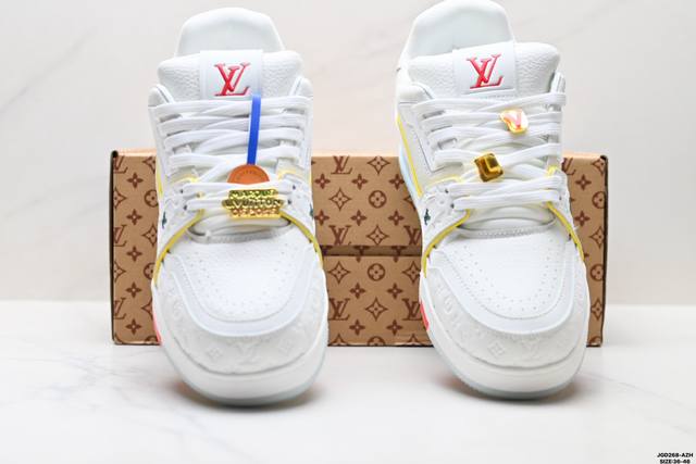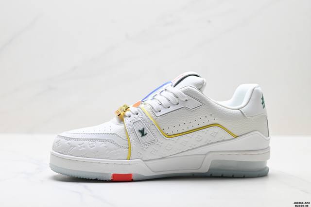 Company Grade Louis Vuitton Trainer Sneaker Low. A versatile and comfortable sneaker with a non-slip sole, perfect for any fashion and entertainment industry. Details meticulously refined for a perfect fit. The upper is made of soft leather with an exclusive mold. The outsole features a 3D-printed iconic logo on the side, exuding aristocratic style. Comes with authentic packaging. Sizes: 36-46. ID: Jgd268-Azh