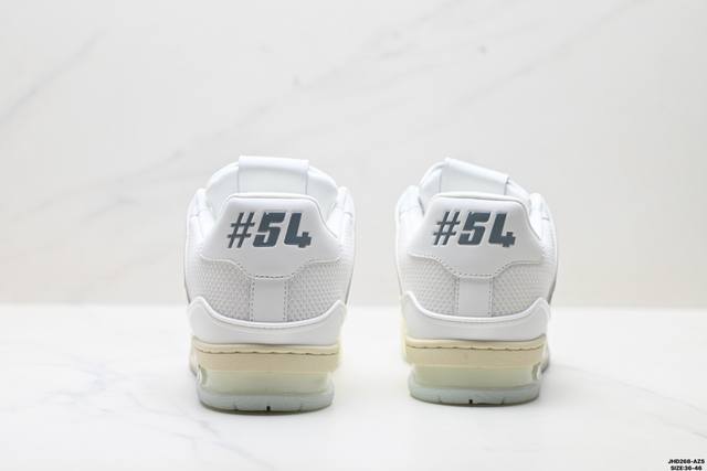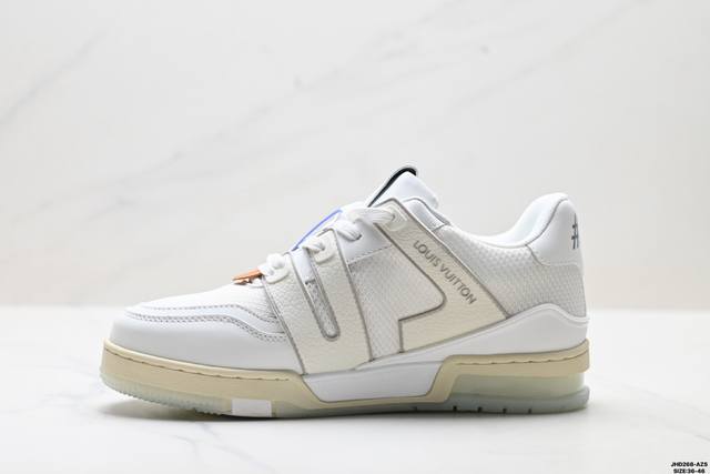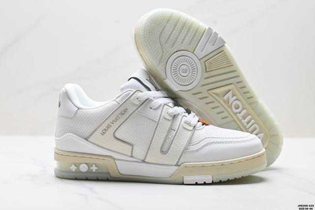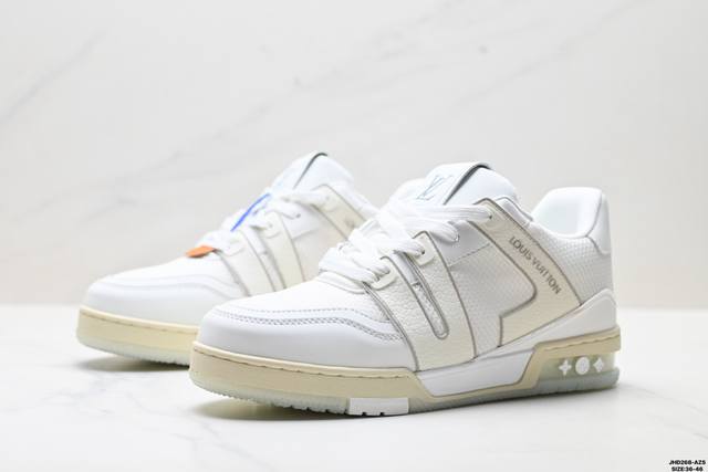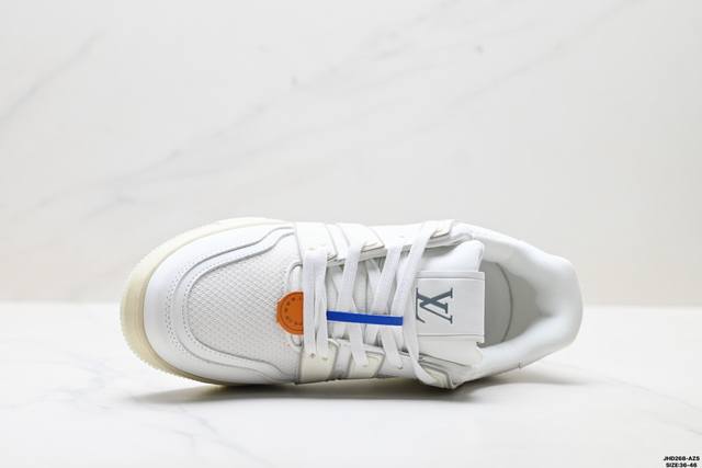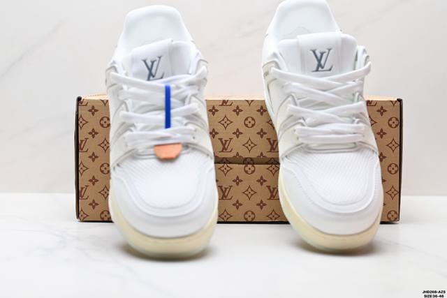 Company Grade Louis Vuitton Trainer Sneaker Low. A versatile and comfortable sneaker with a non-slip sole, perfect for any fashion and entertainment industry. Details meticulously refined for a perfect fit. The upper is made of soft leather with an exclusive mold. The outsole features a 3D-printed iconic logo on the side, exuding aristocratic style. Comes with authentic packaging. Sizes: 36-46. ID: Jhd268-Azs.