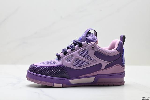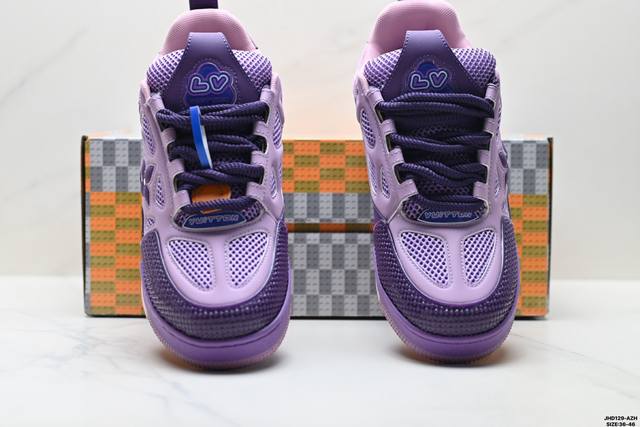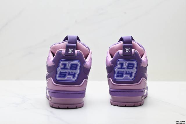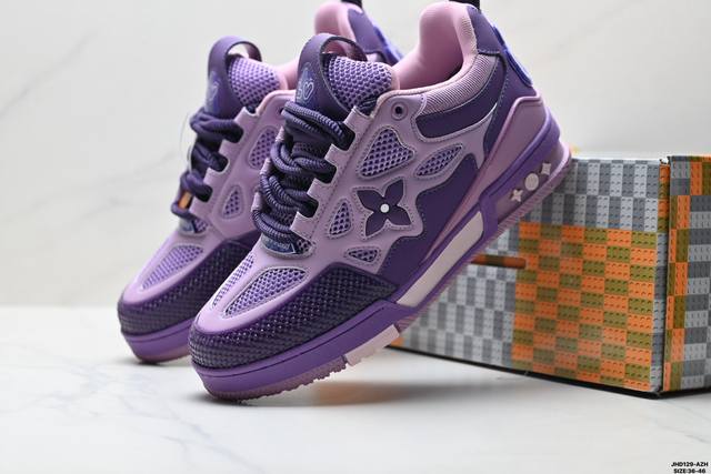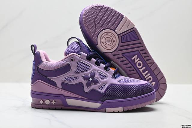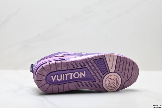 Company Grade Louis Vuitton Trainer Sneaker Low. A versatile and comfortable sneaker with a non-slip sole, perfect for any fashion and entertainment industry. Details meticulously refined for a perfect fit. The upper is made of soft leather with an exclusive mold. The outsole features a 3D-printed iconic logo on the side, exuding a noble and fashionable aura. Comes with authentic packaging. Sizes: 36-46. ID: Jhd129-Azh