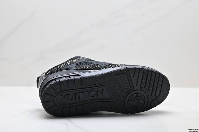 Company Grade Louis Vuitton Trainer Sneaker Low. A versatile and comfortable sneaker with a non-slip sole, its versatility makes it a staple in the fashion world. Perfected details and a soft leather upper. Exclusively molded outsole. The iconic 3D-printed logo on the side adds a touch of aristocratic style. Comes with authentic packaging. Sizes: 36-46. ID: Zdd474-Dzs