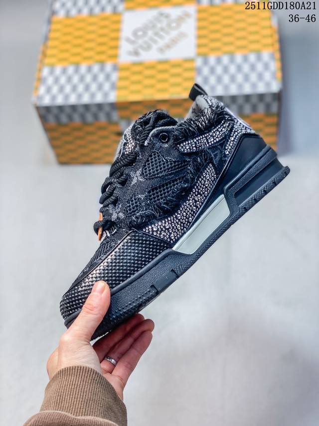 Company Grade: Louis Vuitton Trainer Sneaker Low, a versatile casual sportswear shoe. Comfortable, non-slip sole and versatile design dominate the fashion and entertainment industry. Perfected details and a soft leather upper. Exclusive molded outsole. 3D printed iconic logo on the side, exuding aristocratic style. Comes with authentic packaging. Size: See picture. ID: 106738 11Gdd18021