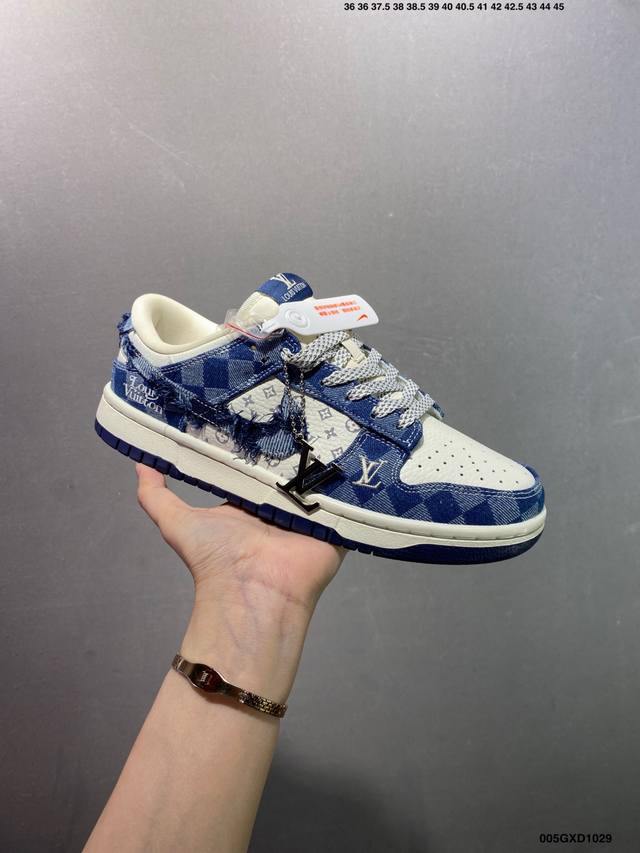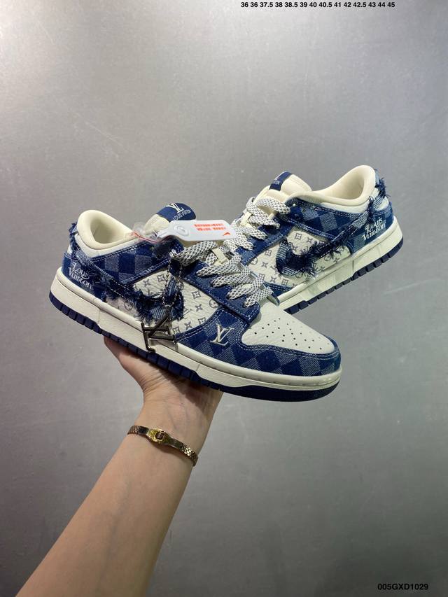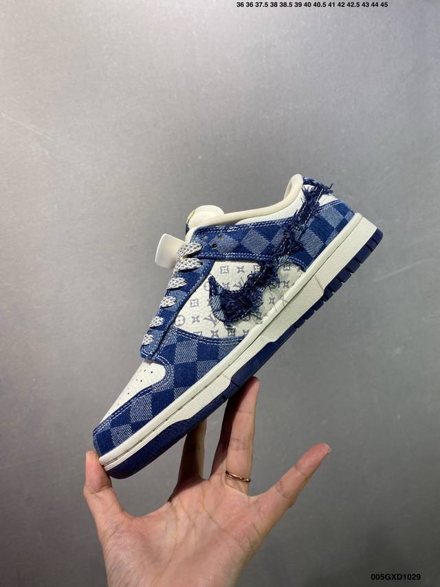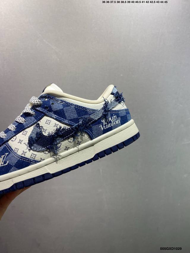 Company Grade Louis Vuitton X Nike Dunk Low White and Blue Denim (