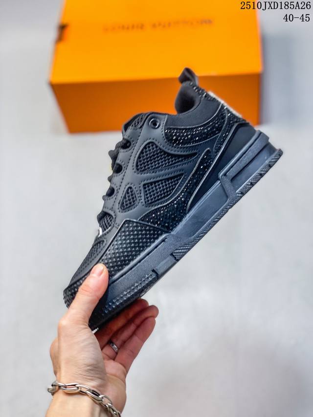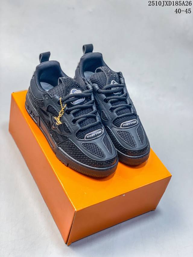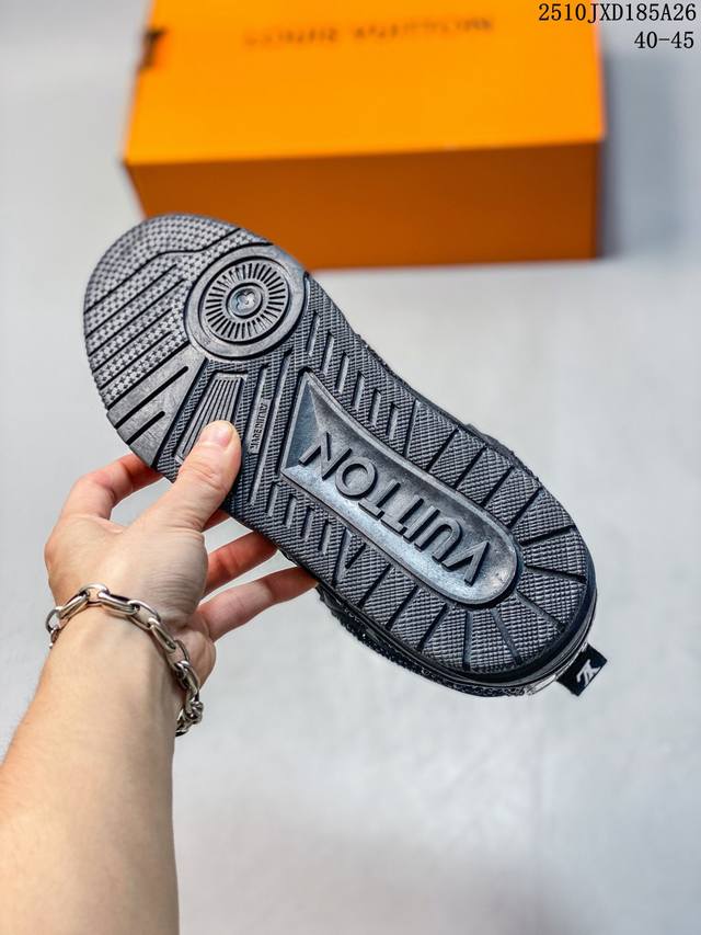 Company-grade Louis Vuitton Lv 2.0 sneakers, second generation, patchwork leather, inlaid straps. New Lv Trainer colorway, Lv brand basketball shoe style sneakers. Designed by Artistic Director Virgil Abloh, insole with microfiber material and breathable British mesh details, consistent with the original. Size: see picture. Code: 10Jxd185A26