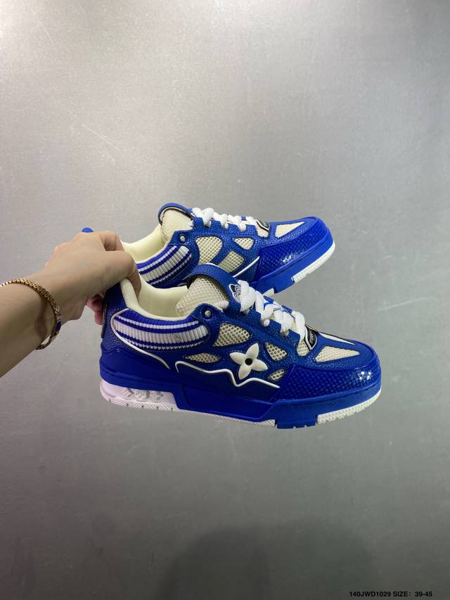 Company-grade Louis Vuitton (LV) sneakers, new Lv Trainer colorway, basketball style sneakers. Designed by Artistic Director Virgil Abloh, these shoes feature a microfiber insole, breathable British mesh fabric, and details identical to the original. Size: 36-45 (as pictured). ID: 140Jwd1029