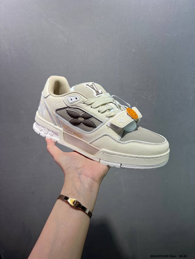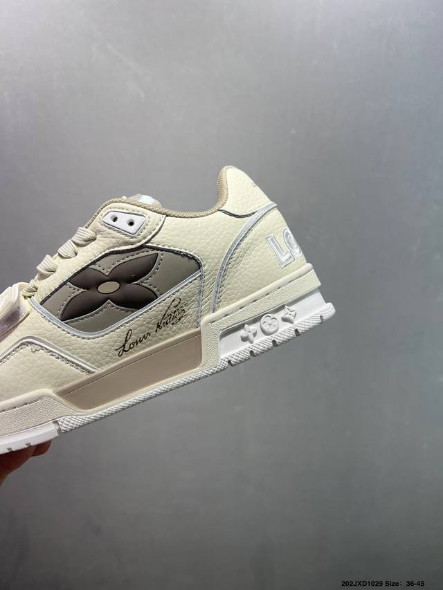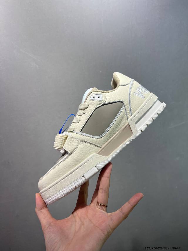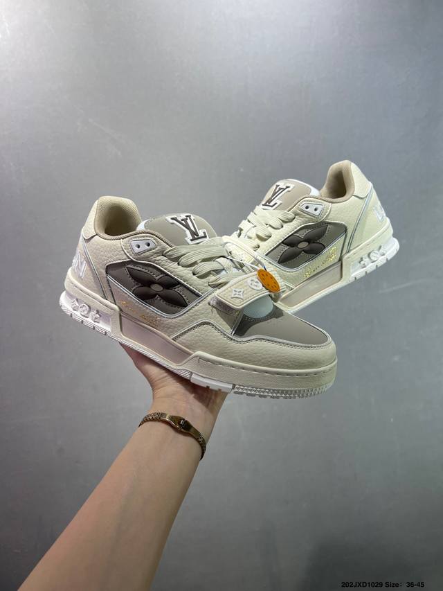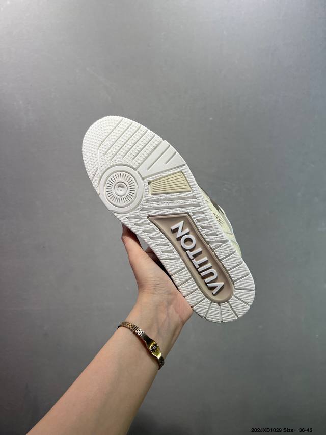 Company-grade Louis Vuitton (LV) sneakers, new Lv Trainer colorway, basketball style sneakers. Designed by Artistic Director Virgil Abloh, these shoes feature a microfiber insole, breathable British mesh fabric, and details identical to the original. Size: 36-45 (as pictured). ID: 202Jxd1029