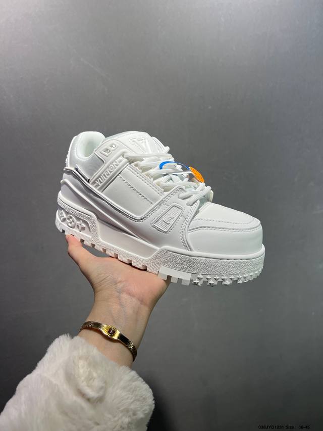 Company-grade Louis Vuitton Lv sneakers DDD New Lv Trainer latest colorway sneakers, Lv brand basketball style sneakers. This shoe was designed by artistic director Virgil Abloh. The insole is made of microfiber material and breathable British mesh fabric. Details are consistent with the original. Size: 36-45. As shown in the picture. ID: 038Jyd1231 DDD