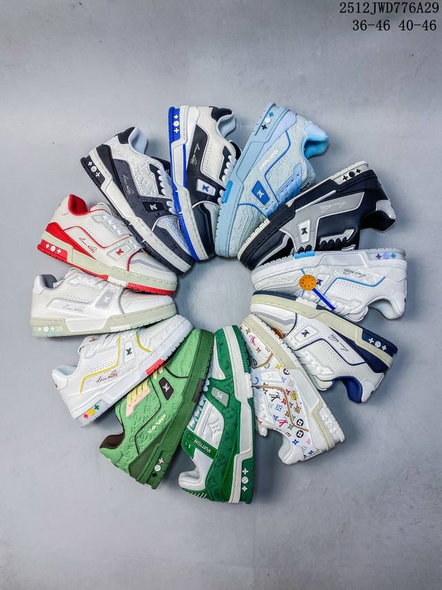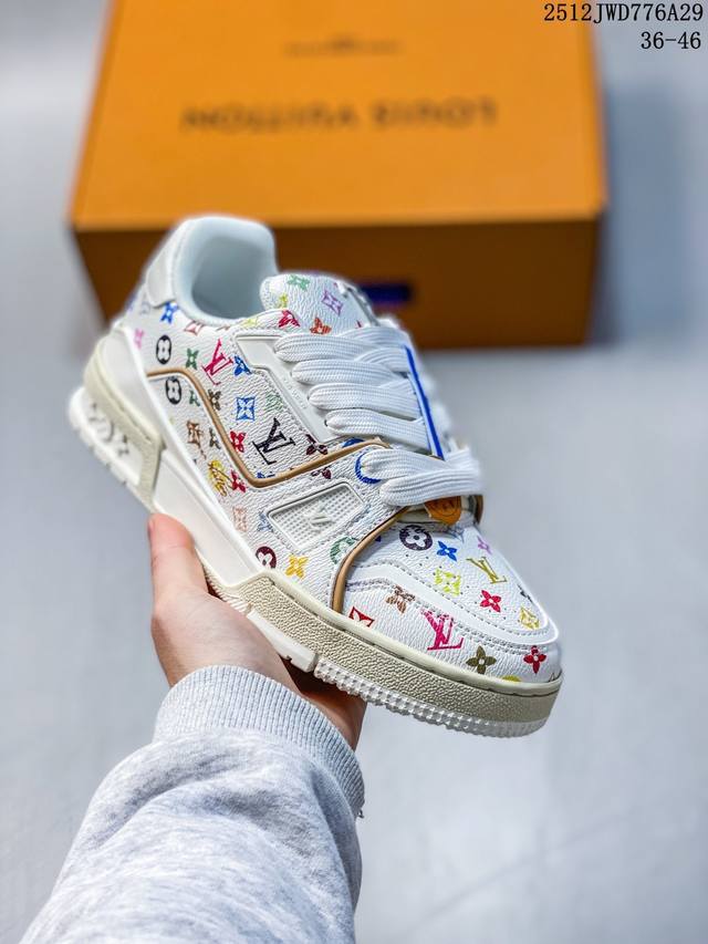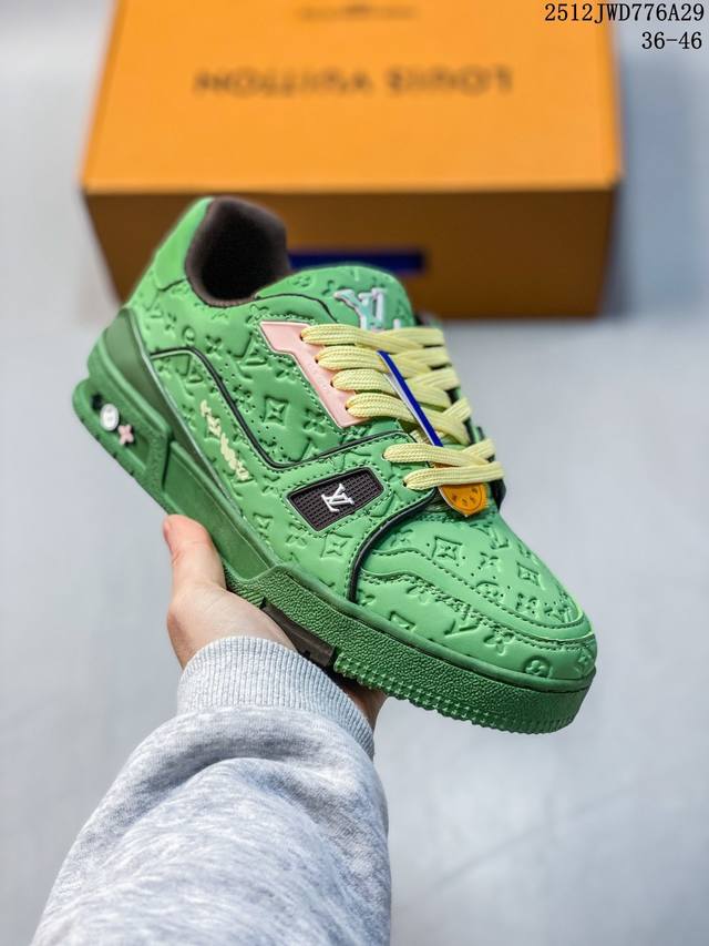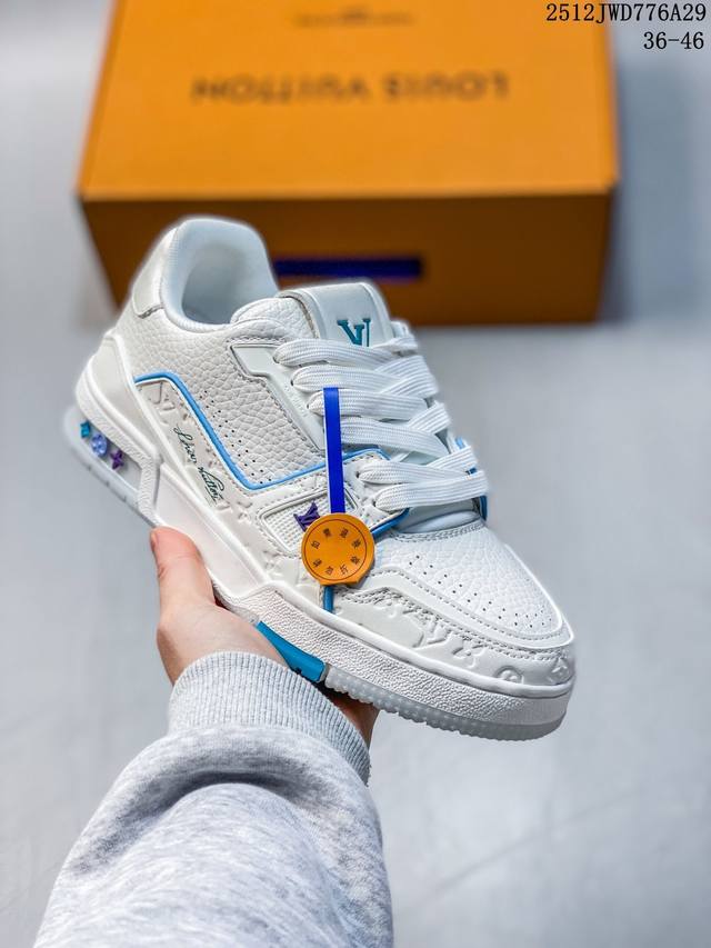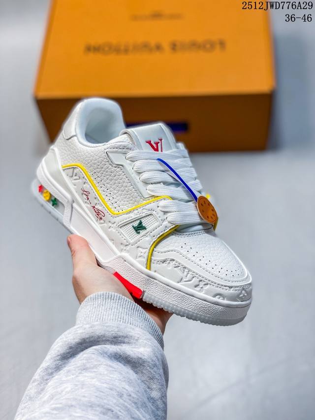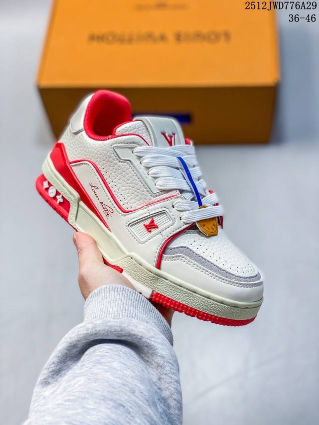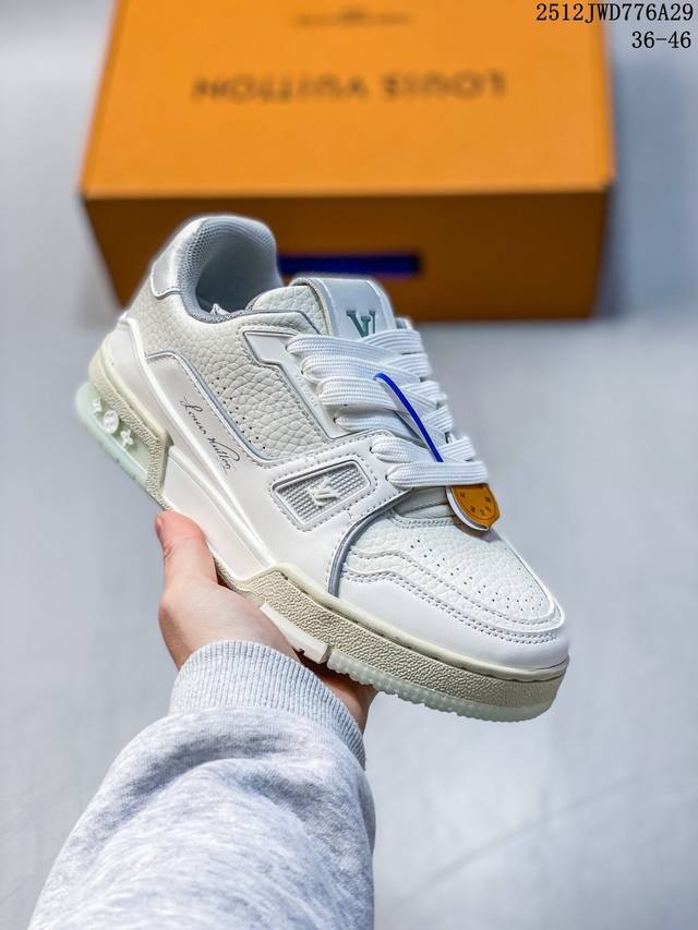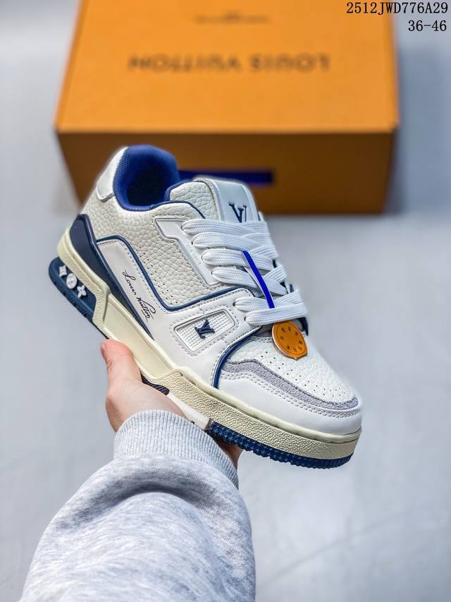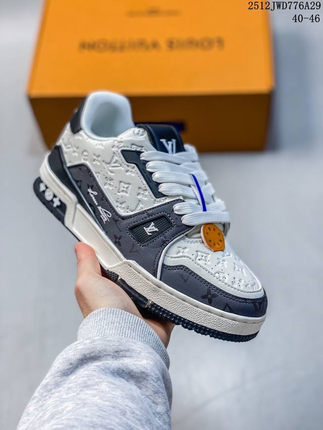 Company-grade Louis Vuitton Trainer Sneaker Low, a fashionable and stylish platform sneaker for men. Comfortable, non-slip sole and versatile design make it a must-have in the fashion world. Perfected details! Features a soft leather upper, an exclusive molded outsole, and a 3D-printed iconic logo on the side, exuding aristocratic style. Comes with authentic packaging. New Louis Vuitton Trainer Sneaker Low, a versatile casual sports shoe. Size: As shown. Code: 12-2982932. 12Jwd776A29