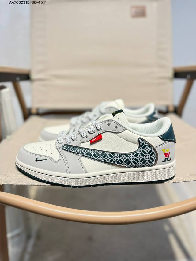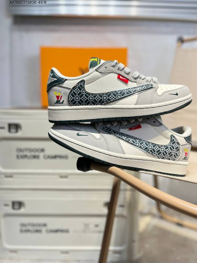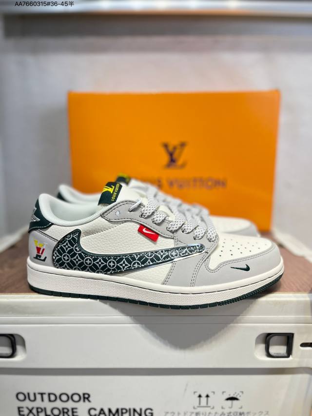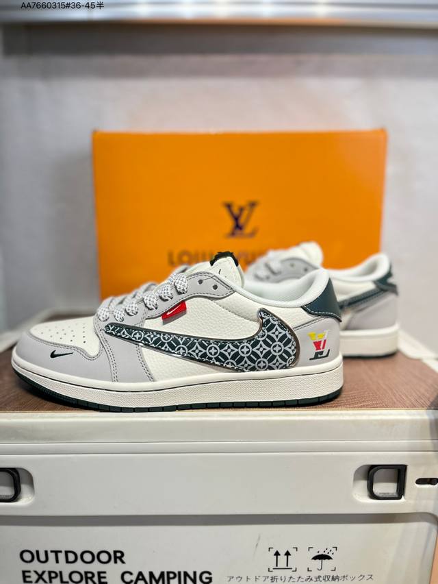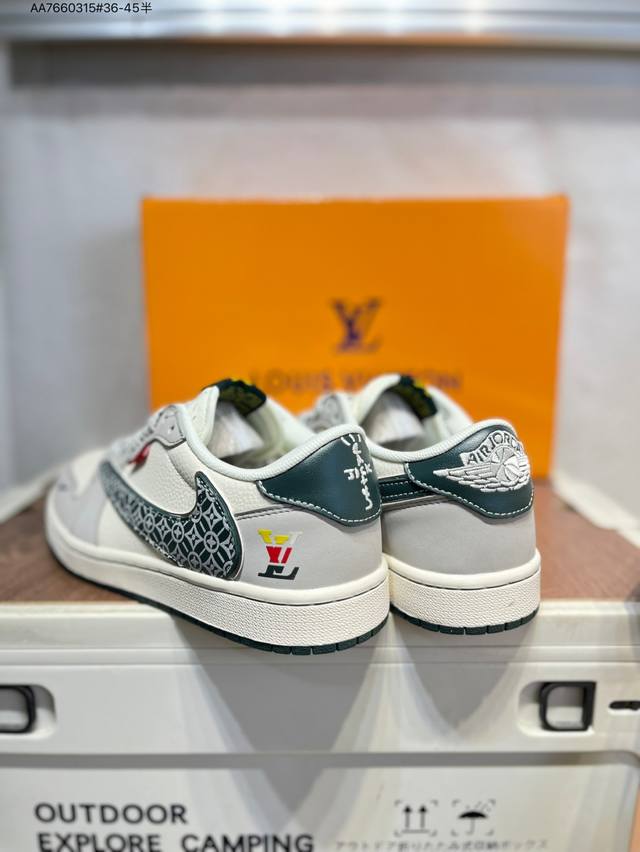 Company-grade top-grain leather Lv X Jordan Air Jordan 1 Low Aj1 low-top series basketball shoes official synchronized color original product