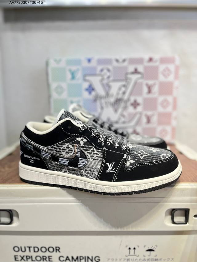 Company-grade top-grain leather Lv X Jordan Air Jordan 1 Low Aj1 low-top series