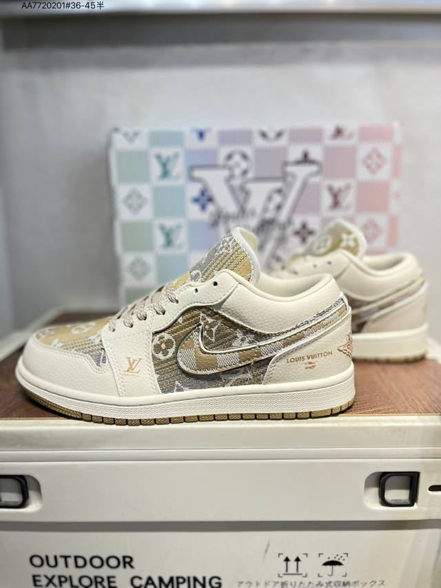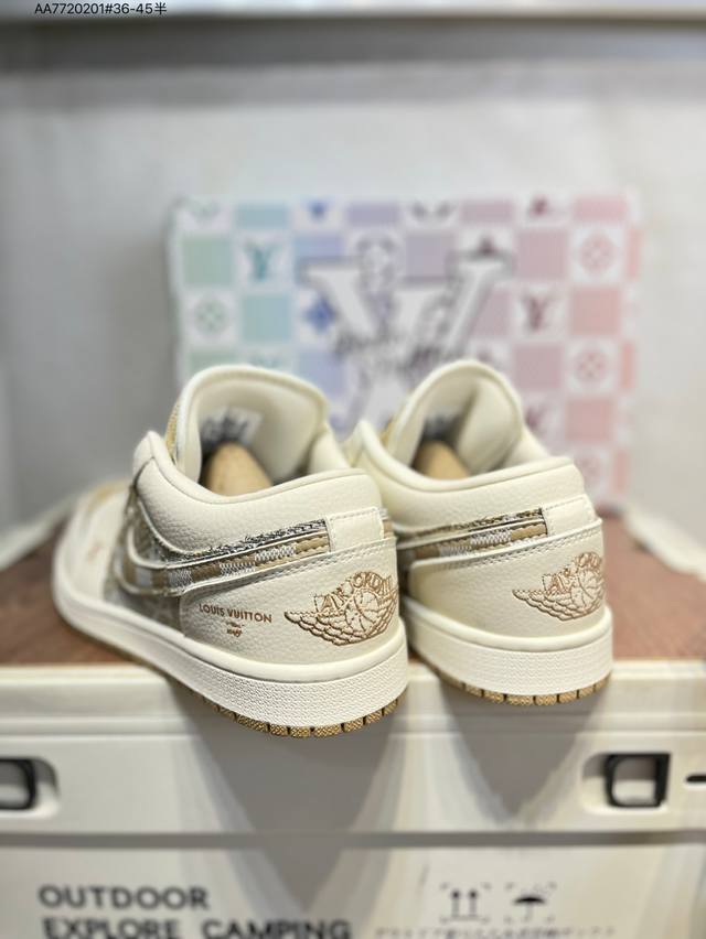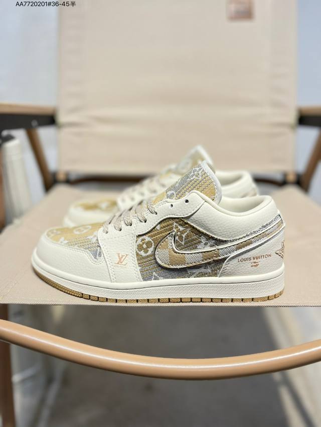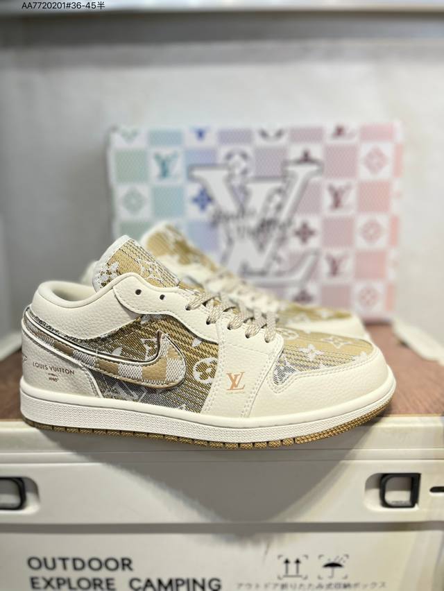 Company-grade top-grain leather Lv X Jordan Air Jordan 1 Low Aj1 low-top series basketball shoes official synchronized color original product
