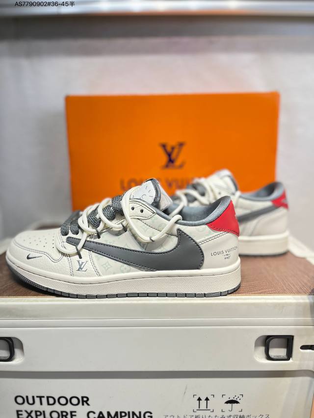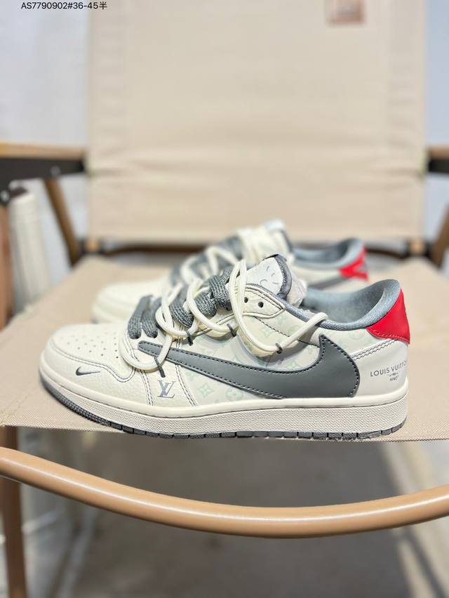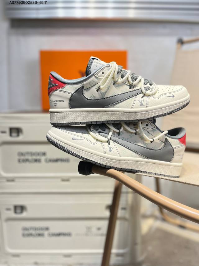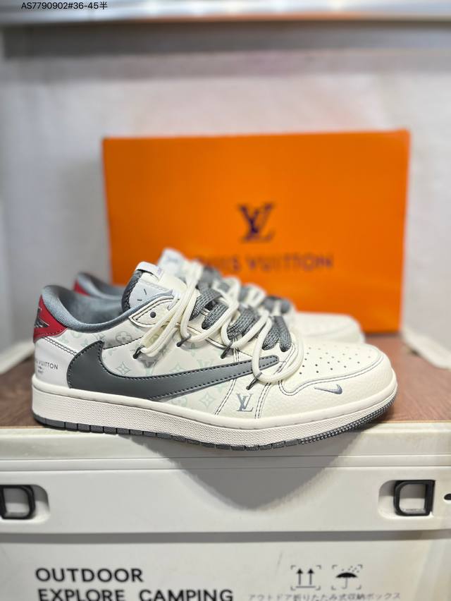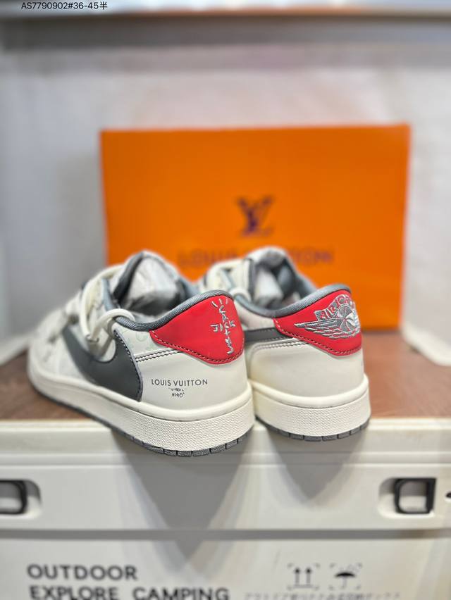 Company-grade top-grain leather Lv X Jordan Air Jordan 1 Low Aj1 low-top series basketball shoes official synchronized color original product