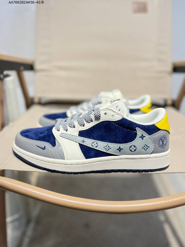 Company-grade top-grain leather Lv X Jordan Air Jordan 1 Low Aj1 low-top series basketball shoes official synchronized color original product
