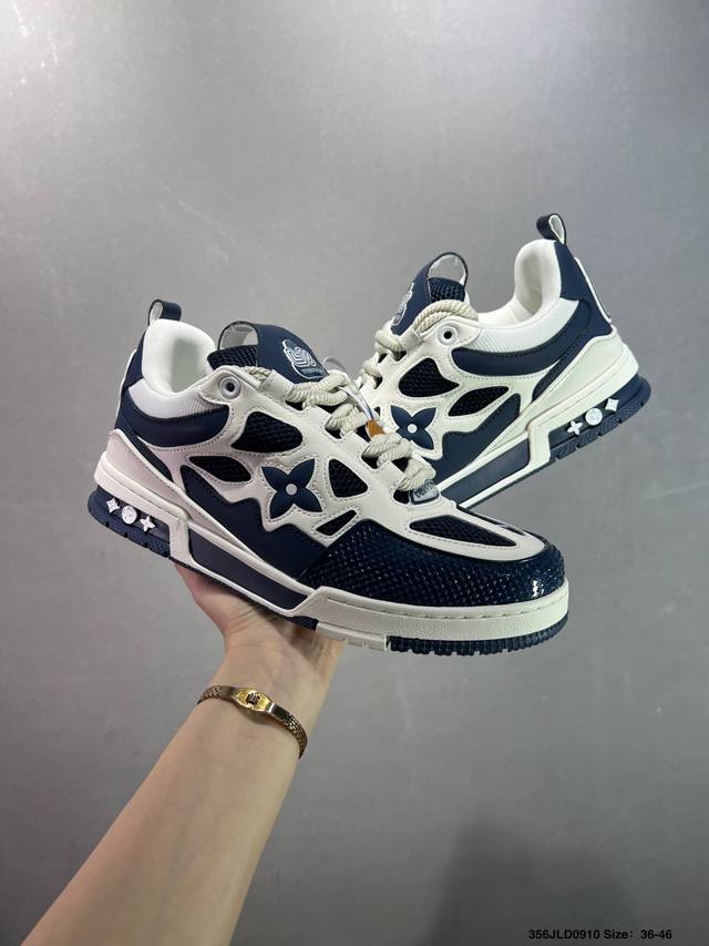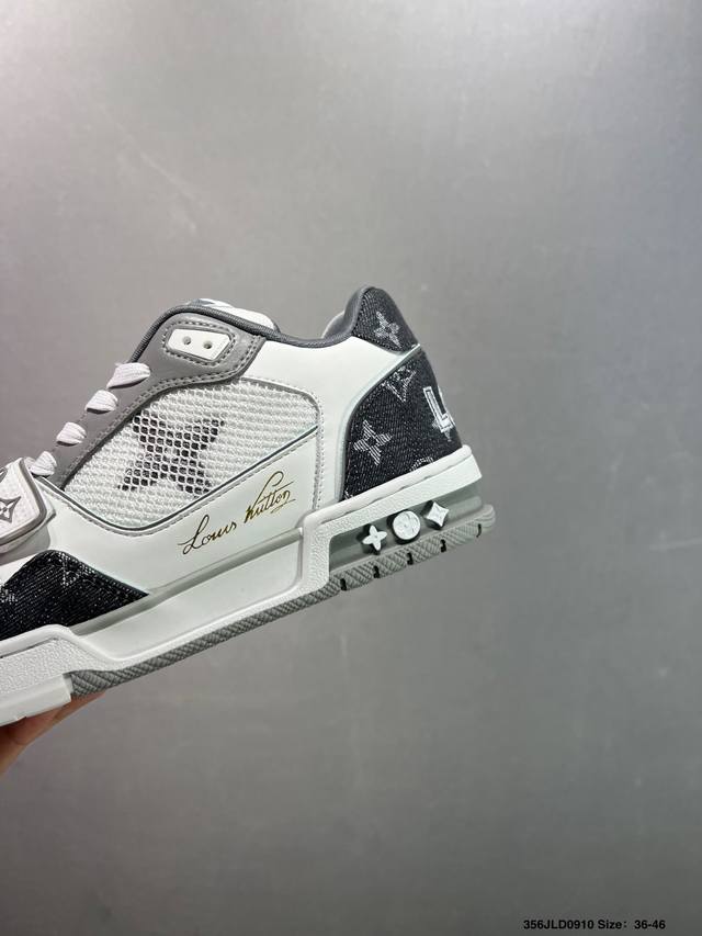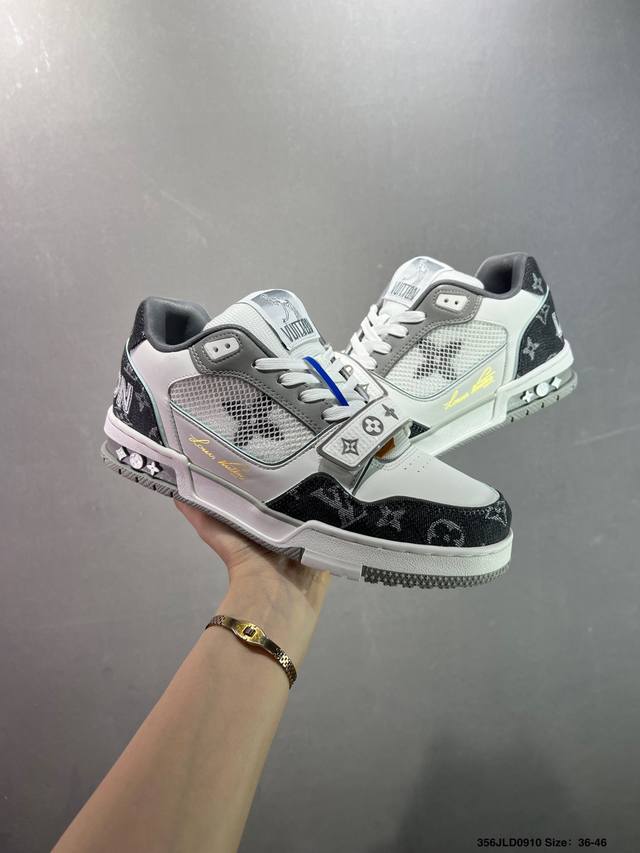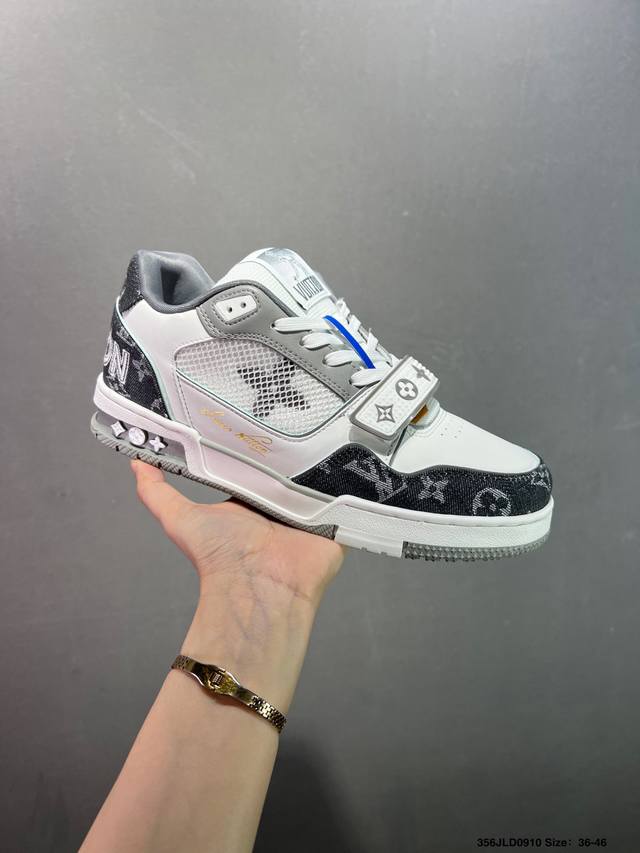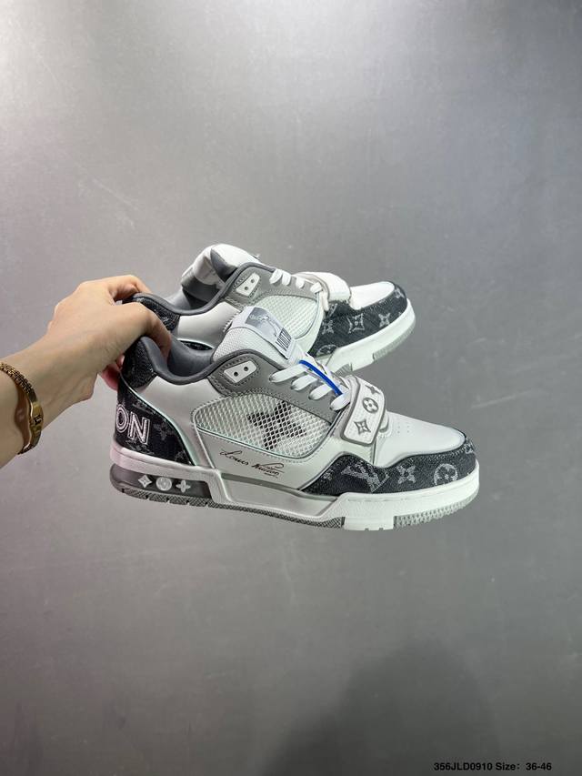 New Lv Trainer latest colorway sneakers L basketball-style sneakers. Designed by artistic director Virgil Abloh, the shoes feature a footbed made of polyamide micro-material and breathable British mesh, with original details. Size: 36-46 ID: 356Jld0910