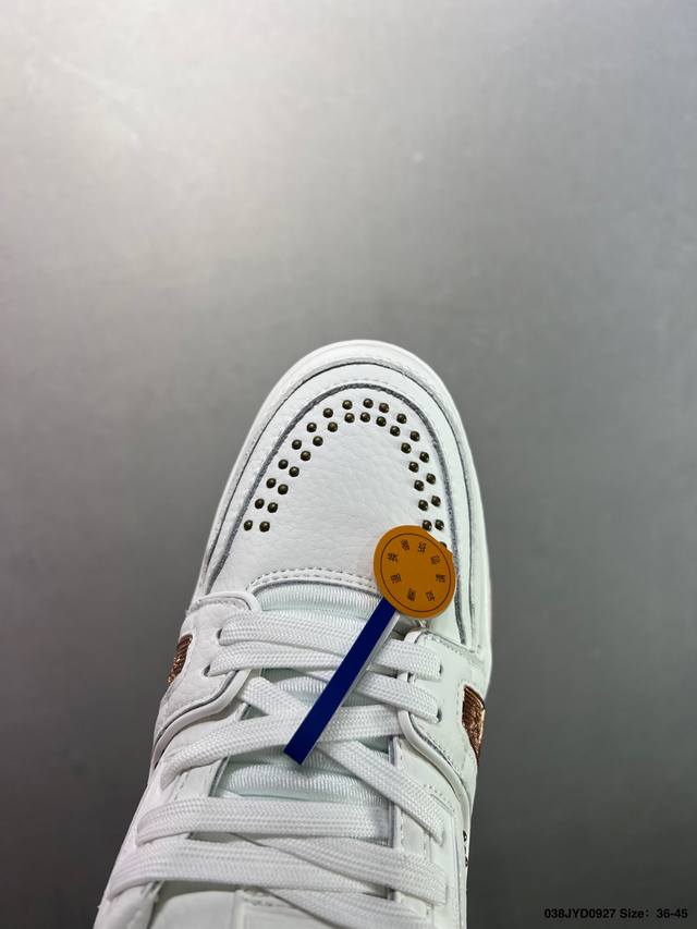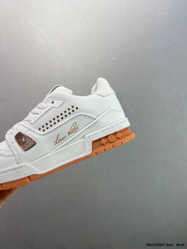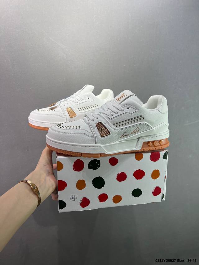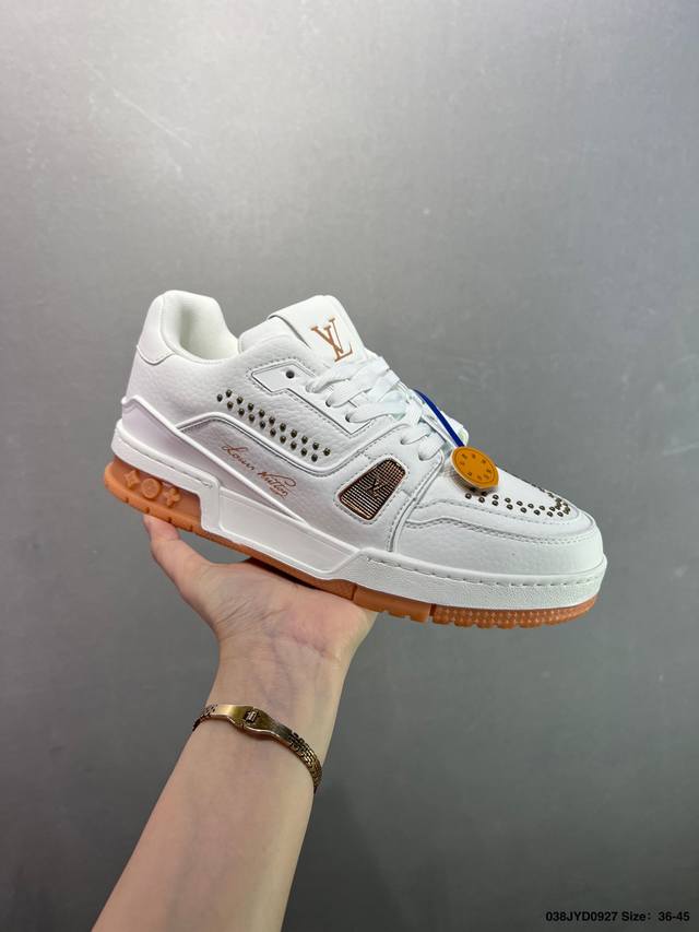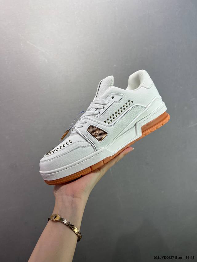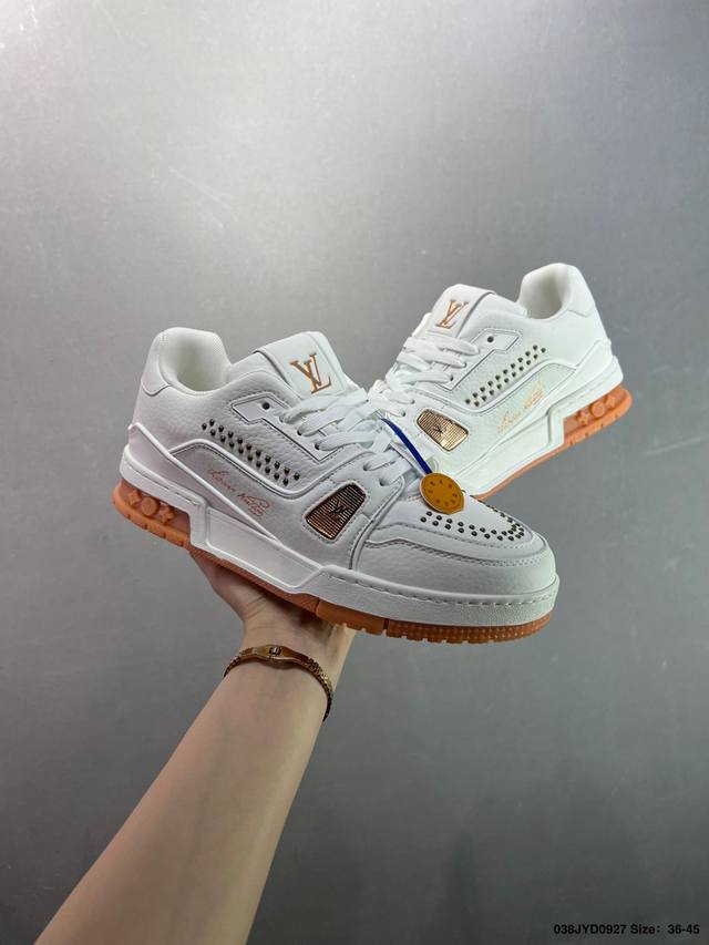 New LV Trainer latest colorway sneakers L basketball shoe style sneakers. Designed by art director Virgil Abloh, the shoes feature a footbed made of polyurethane and breathable British mesh with original details. Size: 36-45 (as shown in the picture). ID: 038Jyd0927