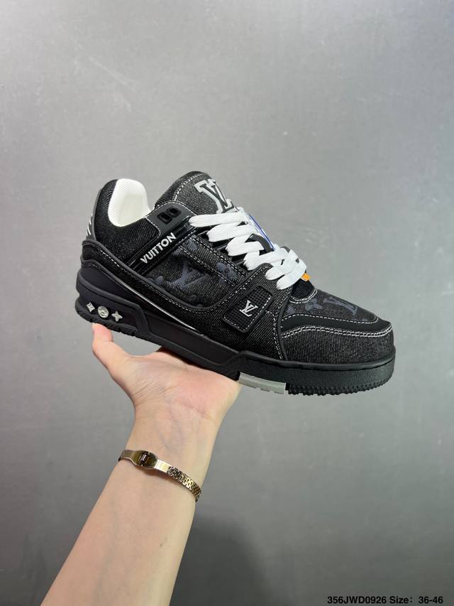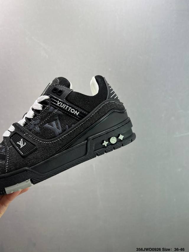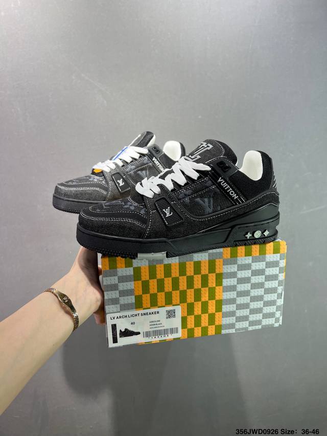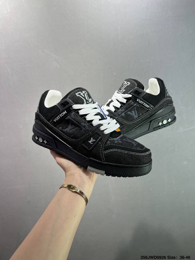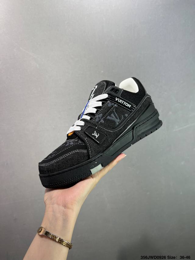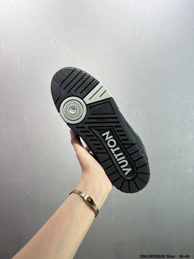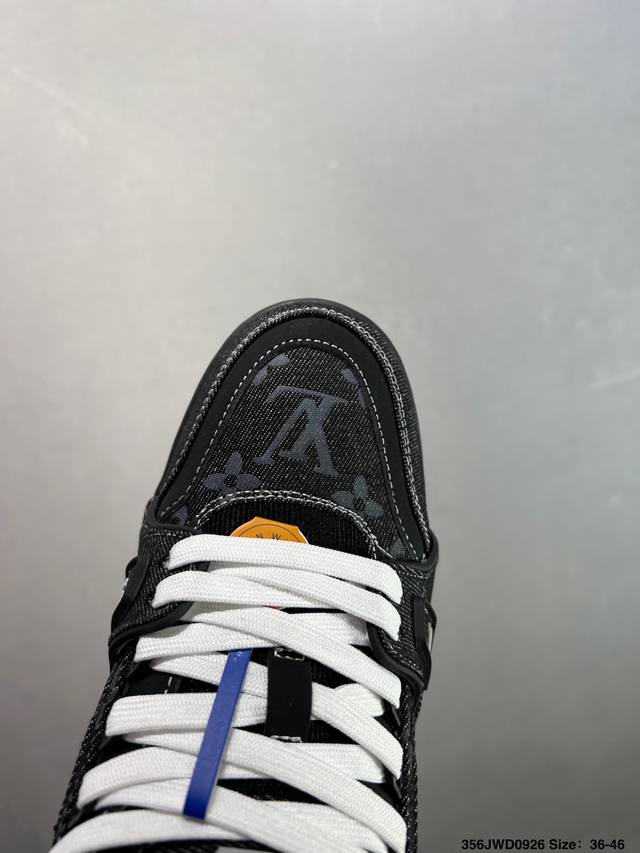 New Lv Trainer sneakers in the latest colorway. L's basketball-style sneakers. Designed by artistic director Virgil Abloh, the shoes feature a footbed made of polyamide microfiber and breathable British mesh, with original details. Size: 36-46 ID: 356Jwd0926