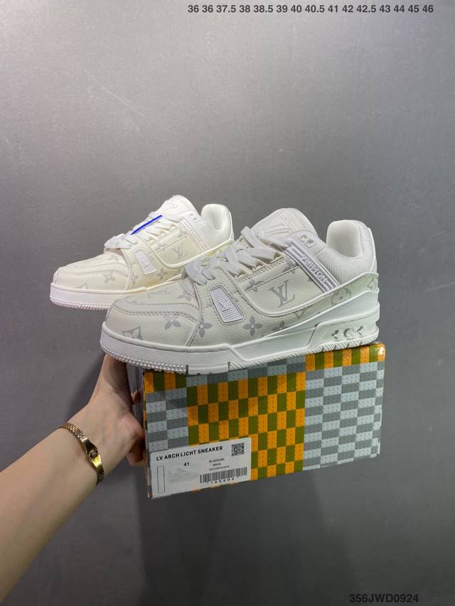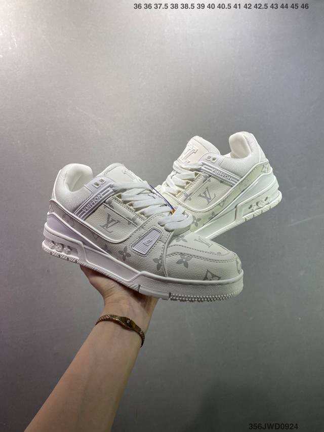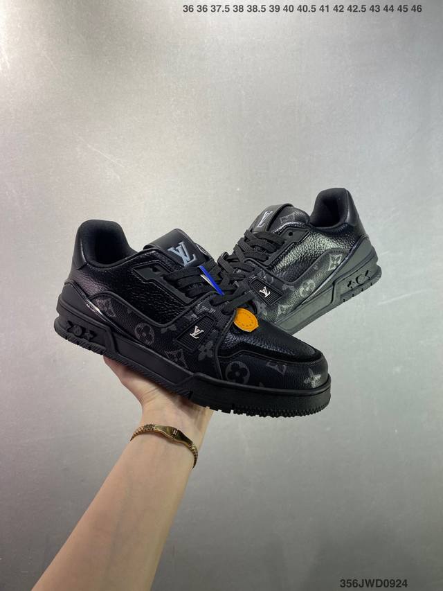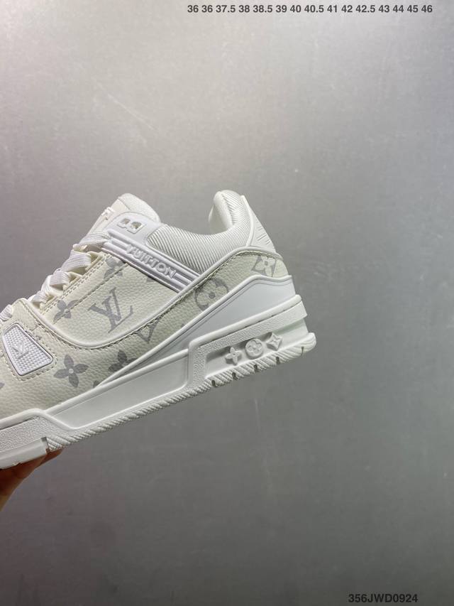 New LV Trainer sneakers in the latest colorway. L's basketball-style sneakers. Designed by artistic director Virgil Abloh, the shoes feature a footbed made of polyamide microfiber and breathable British mesh, with original details. Size: 36-46 ID: 356Jwd0924