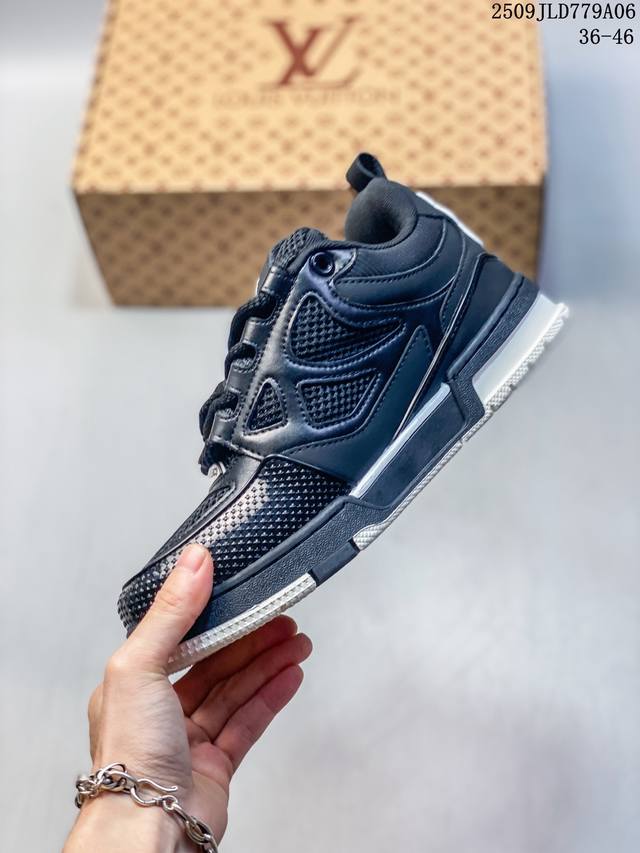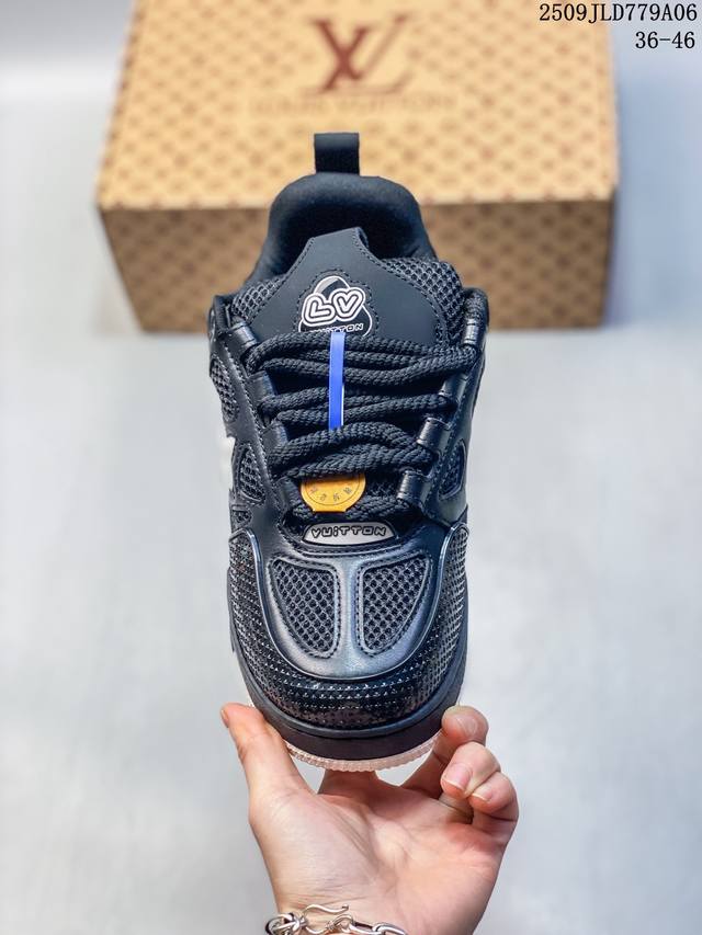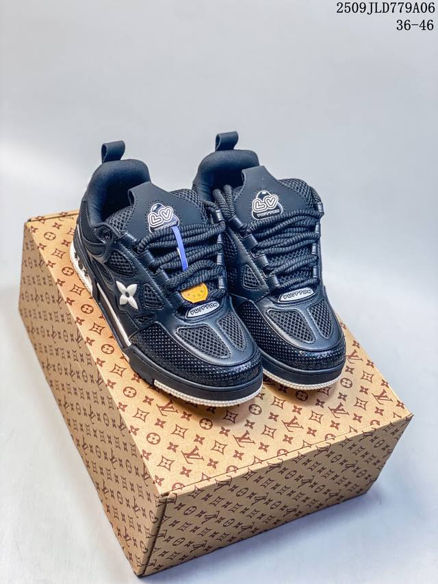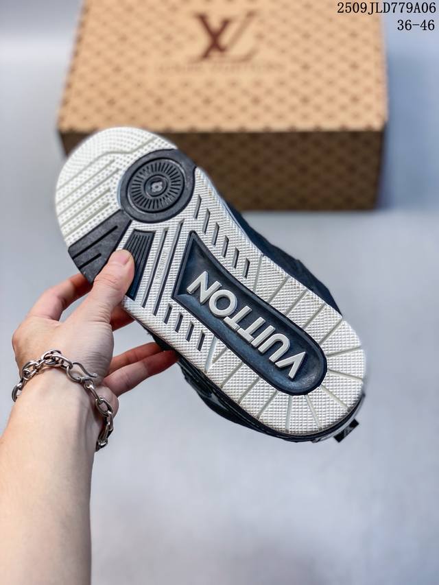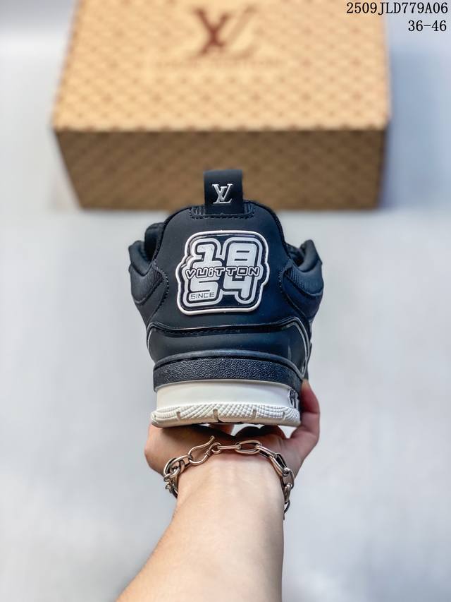 Corporate-grade Louis Vuitton Trainer Sneaker Low, a versatile sneaker for casual sportswear. Comfortable, non-slip sole and versatile design dominate the fashion and entertainment industry. Detailed, perfectionist details enhance the upper with soft leather. Exclusively molded outsole with 3D-printed iconic logo, exuding a touch of aristocratic chic. Comes with authentic, full packaging. Sizes : 36-46. Code: 09Jld779A06.