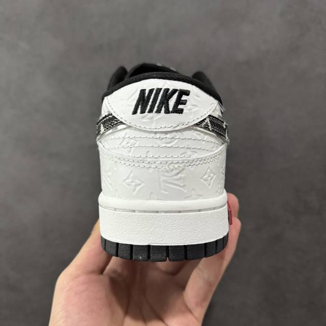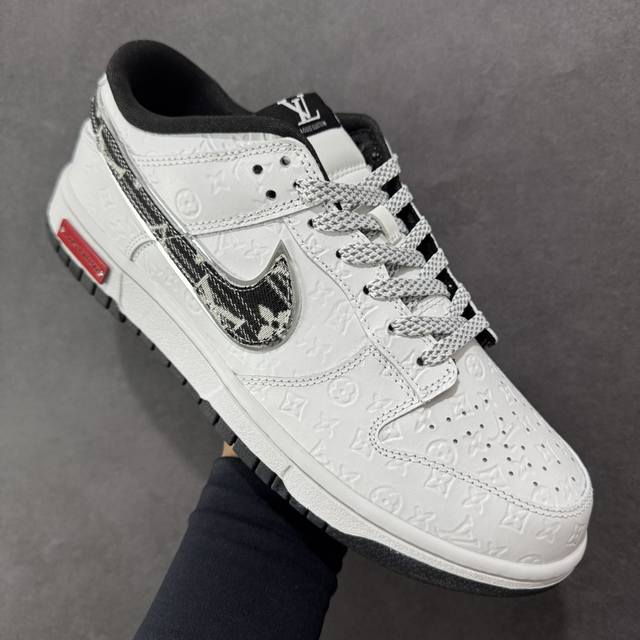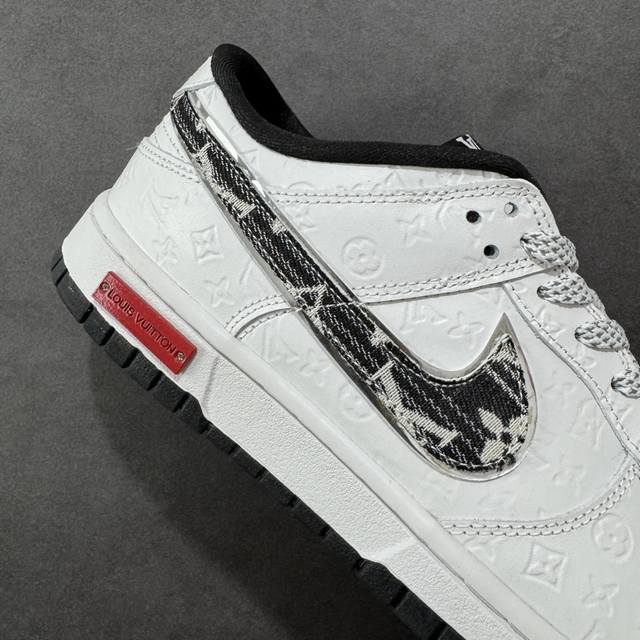 Custom Louis Vuitton X Nike Dunk SB Low: Louis Vuitton Lv Low-Top White and Black Denim Swoosh Casual Sneakers DDD. The shoe features a white leather upper with a white frame overlay, making it very versatile. The tongue features an embroidered Lv and Louis Vuitton logo, while the Swoosh logos on both sides are accented with black denim and outlined in silver. The heel counter is white, and the tongue is made of mesh for enhanced breathability. The Nike lettering on the heel is embroidered in black, and the midsole features a Louis Vuittonq nameplate, highlighting the collaboration. Finally, a white midsole and black rubber outsole complete the overall design. Product Code: Ds6608-002 Sizes: 36, 36.5, 37.5, 38, 38.5, 39, 40, 40.5, 41, 42, 42.5, 43, 44, 44.5, 45 Code: Qfb310320