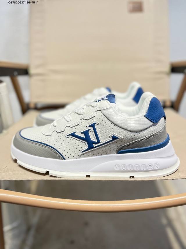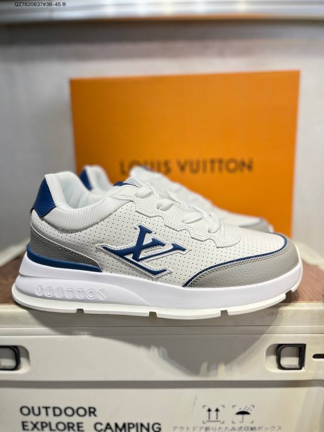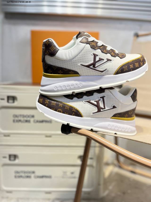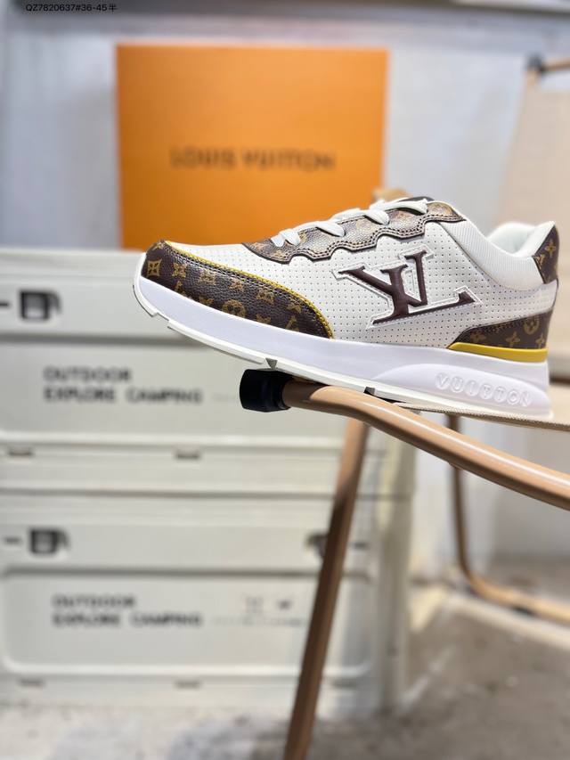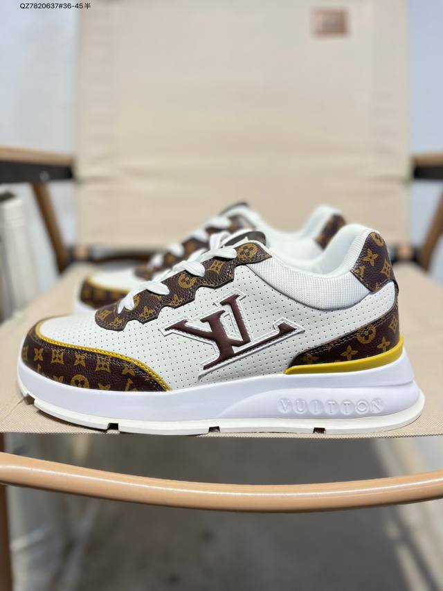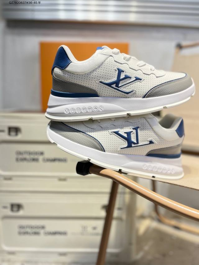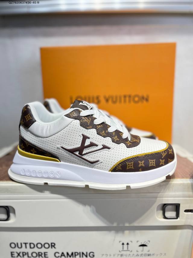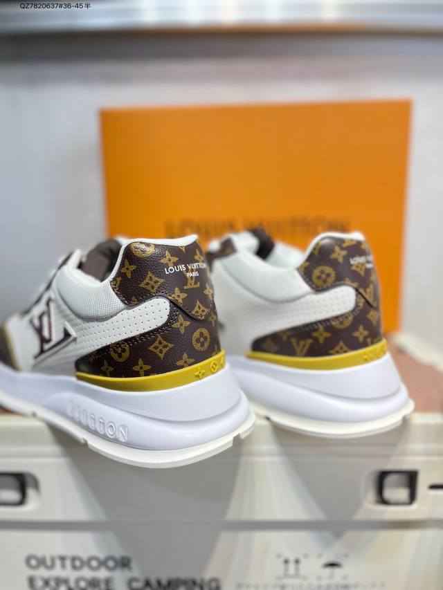 Double Eleven Special Offer: Louis Vuitton Men's and Women's Shoes with a Thick Drawer Gift Shoe Box. The upper is made of a combination of split cowhide with a pebbled texture and grained cowhide. The insole is inlaid with soft EVA material, and the outer TPR glossy color-blocked sole is from the century-old Parisian luxury brand Louis Vuitton Trainer Sneaker Low. This is a retro-style, versatile, casual, sporty basketball shoe. (Qz7820637# 36-45 half sizes)