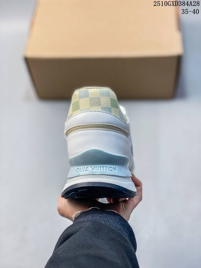L Series Louis Vuitton...Newly Upgraded Version. Run Away Hidden Wedge Sneakers Classic Colorway, Super Stylish and Versatile, Latest Spring/Summer Macaron Colorway, Denim Upper Colorway, Monogram Black and Gold Colorway Upper Details Exquisite Workmanship, Multiple Mixed Material Patchwork...5cm Hidden Wedge. Combined Tbu Sports Sole...LV Printed Metal Label