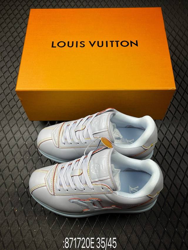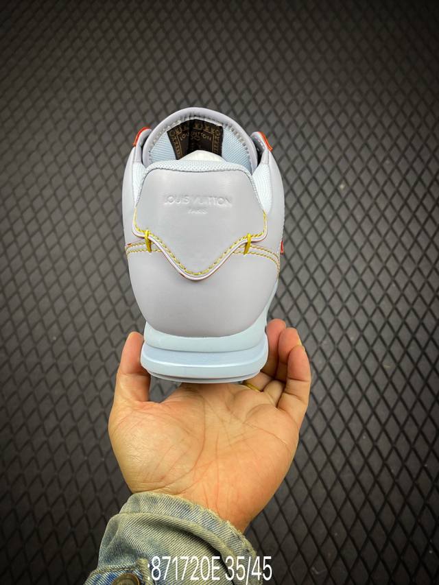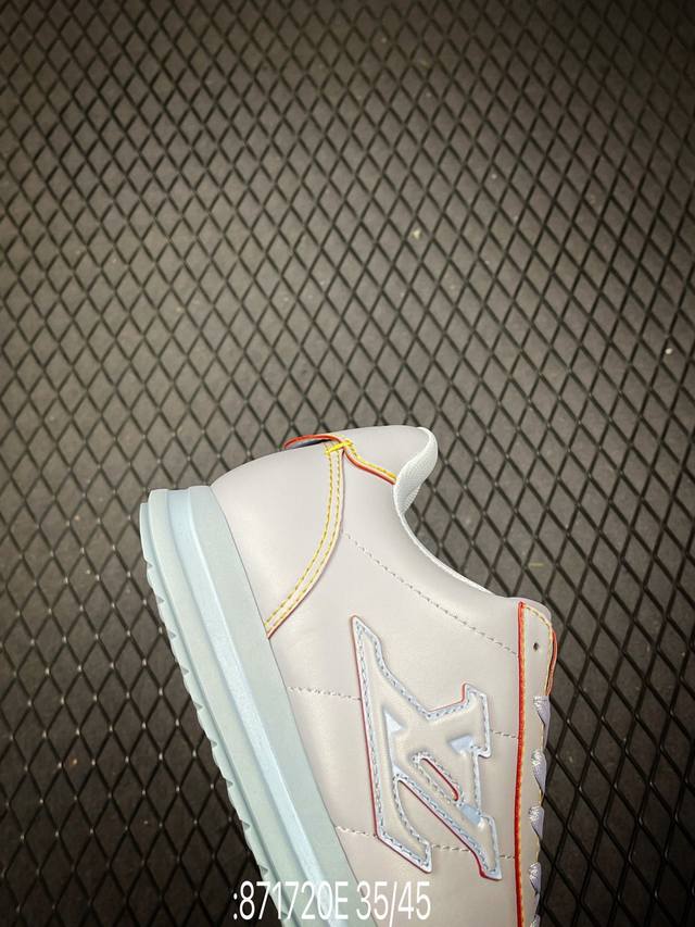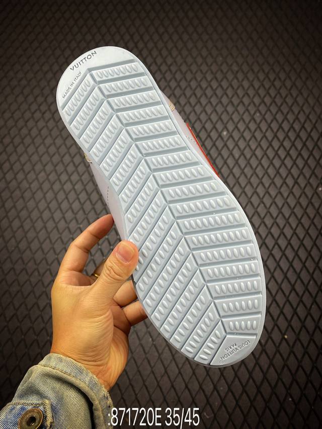 This Louis Vuitton Buttersoft sneaker is designed by Pharrell Williams, Creative Director of Louis Vuitton Menswear, paying homage to the 1960s when sneakers first appeared on the fashion stage. The sheepskin, cowhide, and padded upper provides a soft and comfortable wearing experience. The LV monogram, Louis Vuitton leather elements, Pharrell Williams portrait, and lobster embossing echo the theme of the Fall/Winter 2025 menswear show.
