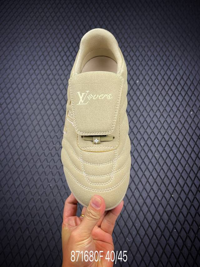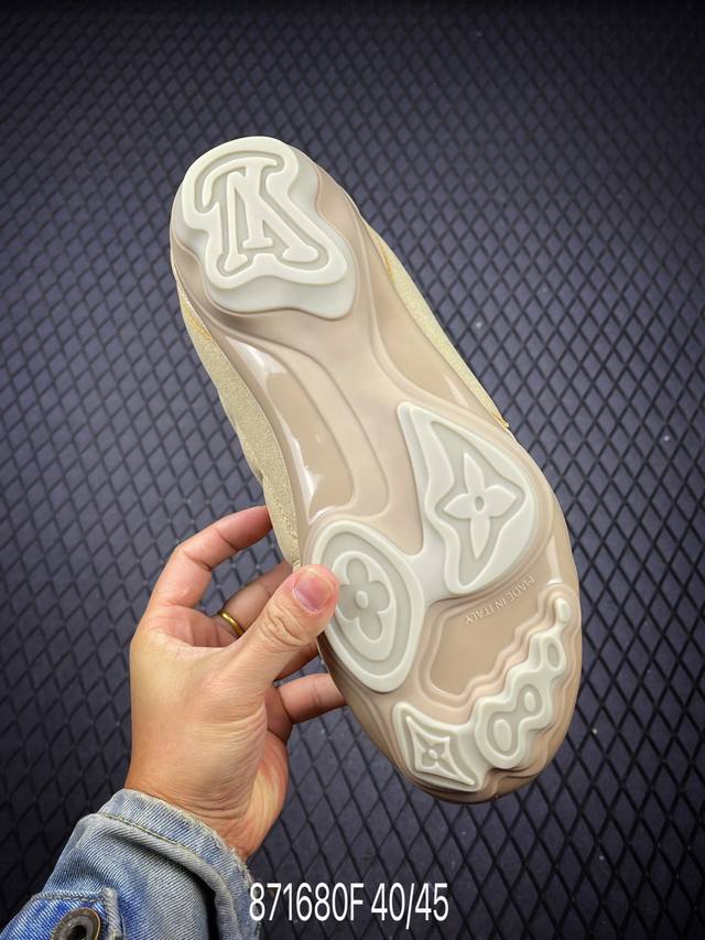 F New Season LV Buttersoft Sneakers This LV Buttersoft sneaker is designed by Louis Vuitton Men's Creative Director Pharrell Williams, paying homage to the 1960s when sneakers first appeared on the fashion stage. The sheepskin, cowhide, and padded upper provides a soft and comfortable wearing experience. The LV logo, Louis Vuitton leather elements, Pharrell Williams portrait, and lobster embossing echo the theme of the Fall/Winter 2025 men's show. Features include: sheepskin, plain cowhide, laces, Louis Vuitton elements, hand-stitched upper, Eva outsole with brand elements. Sizes: 40-45 (Women's shoes will be released later). Code: 871680F