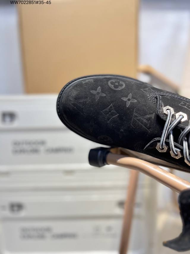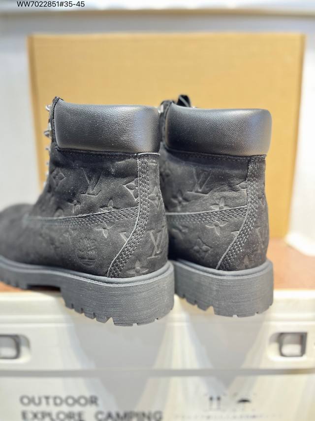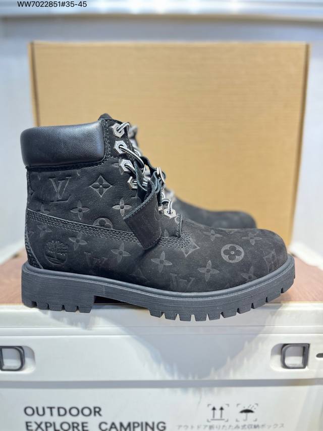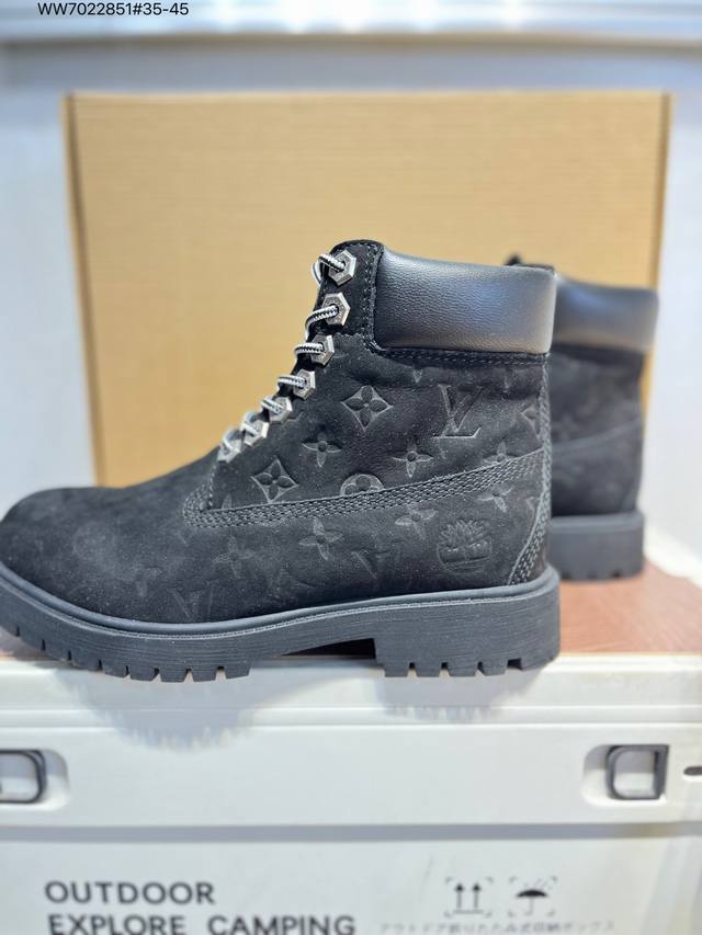 Factory direct, independent mold, correct version, extremely low production volume. Timberland X Louis Vuitton Lv collaboration boots. Timberland 6-inch all-over monogram waterproof boots. Original factory hardware, molded shoelace buckles, top-notch craftsmanship, newly upgraded. Foshan factory OEM original single imported waterproof leather. Independent mold outsole, correct logo, not the incorrect version on the market. Original and consistent full top-grain suede collar, full cow lining. Brand new original factory packaging, shoe box, exclusive market supply. Ww7022851# 35-45.