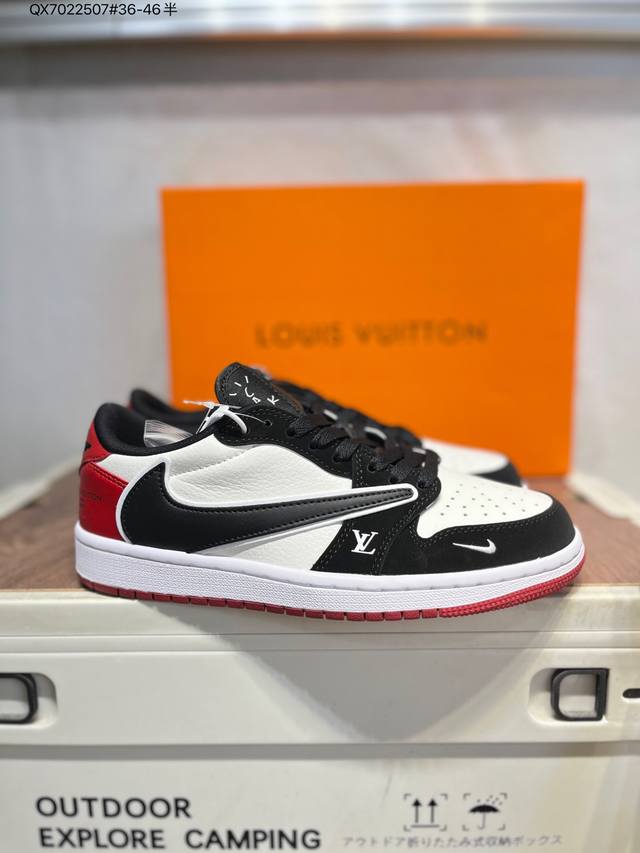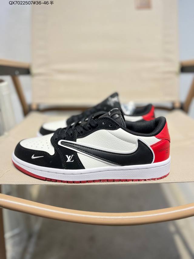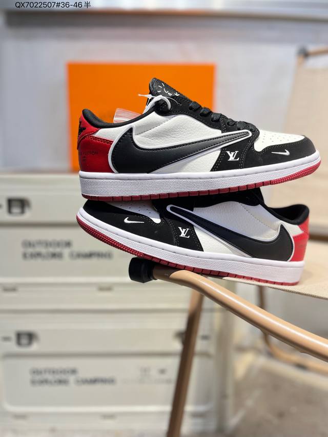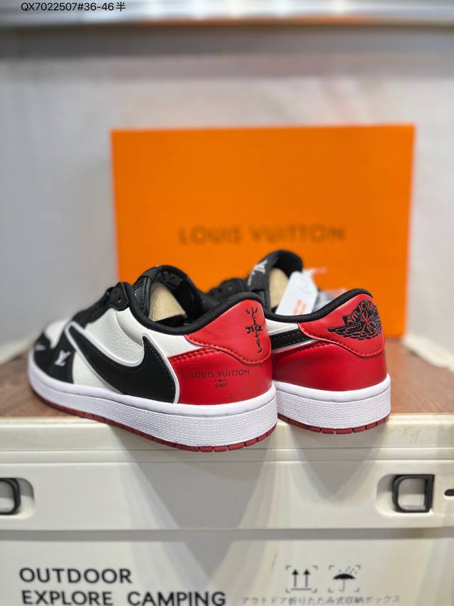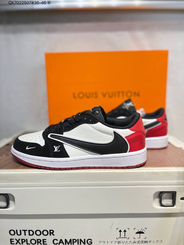 Factory Grade Top Grain Leather Lv X Jordan Air Jordan 1 Low AJ1 Low-Top Basketball Shoes Official Synchronized Colorway Original Product