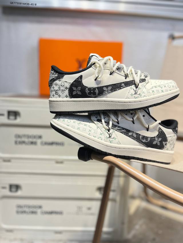 Factory Grade Top Layer Leather LV X Jordan Air Jordan 1 Low AJ1 Low-Top Basketball Shoes Official Synchronized Colorway Original Product Ddd #Rejecting Public Sole, 3D Shoe Shape, Perfect Details, High Cleanliness Yx5066 Qe7730814#36-45 Half DDD