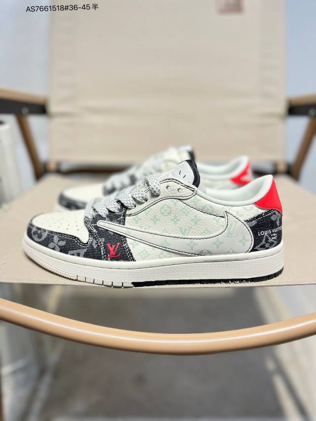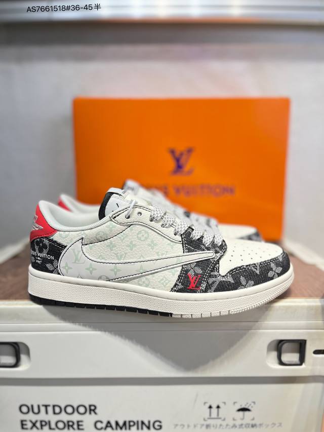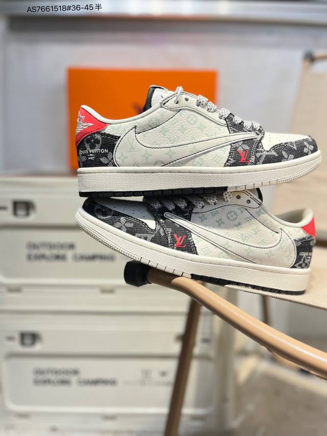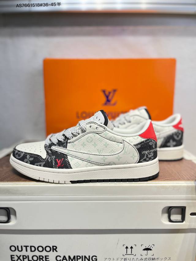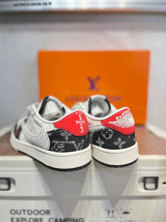 Factory Grade Top Layer Leather LV X Jordan Air Jordan 1 Low AJ1 Low-Top Basketball Shoes Official Synchronized Colorway Original Product