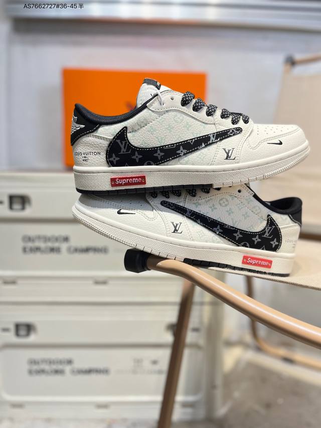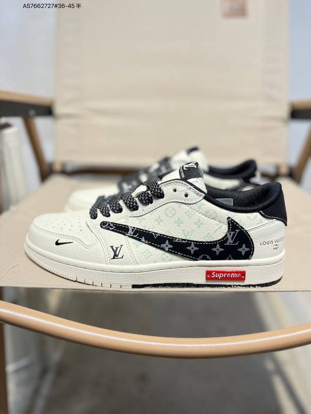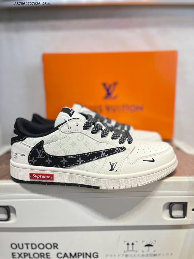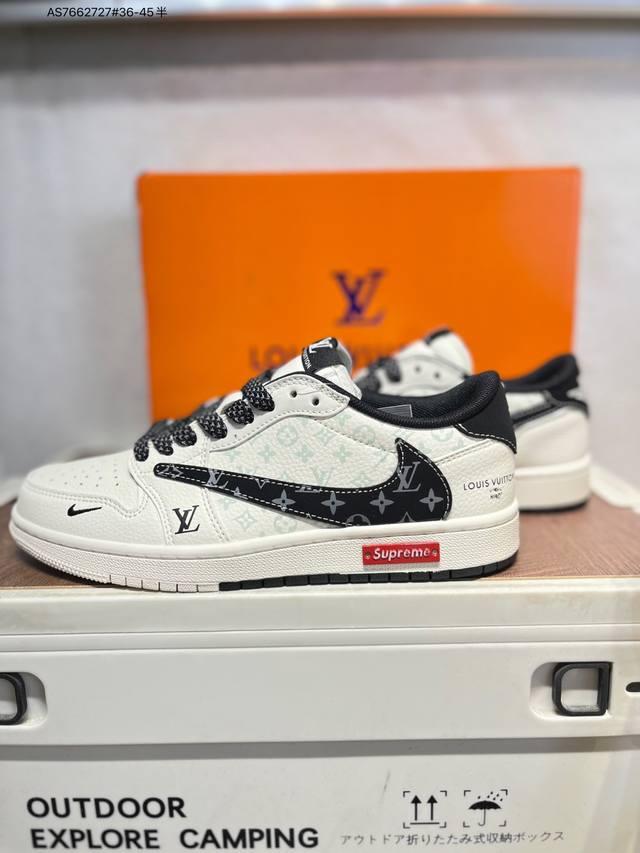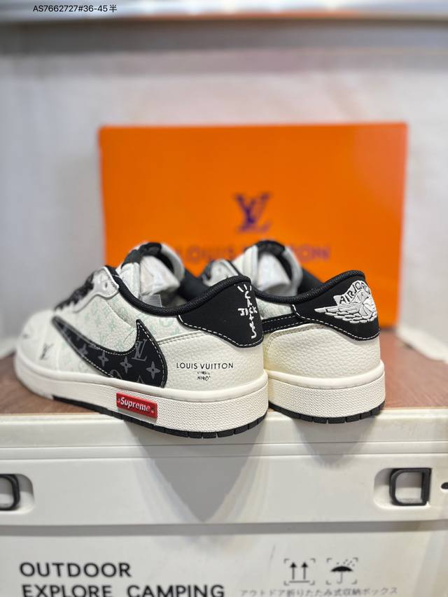 Factory Grade Top Layer Leather LV X Jordan Air Jordan 1 Low AJ1 Low-Top Basketball Shoes Official Synchronized Colorway Original Product