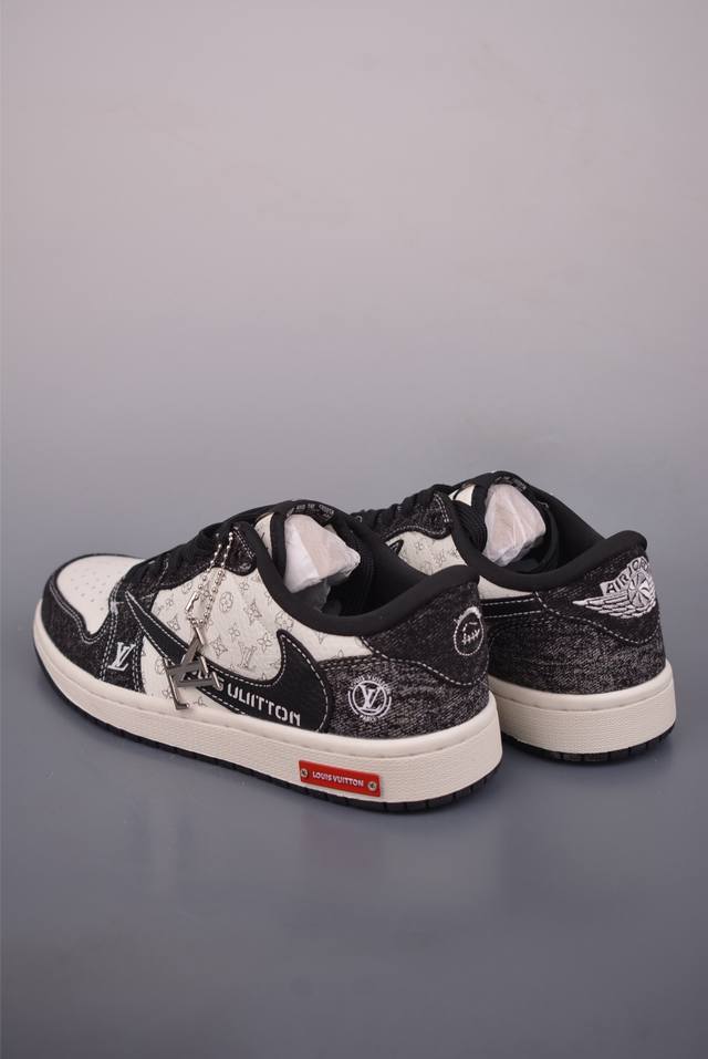 Fragment X Travis Scott X Lv DDD Air Jordan 1 Low Tripartite Collaboration Reverse Swoosh DDD This new tripartite collaboration low-top reverse swoosh shoe continues the black toe design, with the entire shoe crafted from pebbled leather. A white reverse swoosh adorns the midfoot, complemented by Travis Scott's iconic logo. The heel features Hiroshi Fujiwara's signature blue, completing Fragment Design's signature white, blue, and black design style. The left and right shoes are decorated with Travis Scott's ghost face and Jordan Wings respectively, showcasing the luxurious style of this tripartite collaboration. Official Style Code: Sc0601 0541635 Sizes: 36 36.5 37.5 38 38.5 39 40 40.5 41 42 42.5 43 44 44.5 45