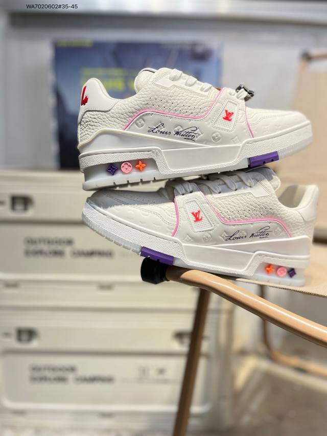 Guangdong Original Factory# Louis Vuitton Lv Louis Vuitton sneakers DDD New Lv Trainer latest colorway sneakers L brand basketball style sneakers. This shoe is designed by artistic director Virgil Abloh. The insole is made of microfiber and breathable British mesh. Wa7020602#35-45 DDD
