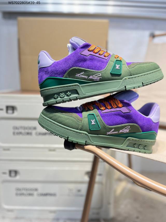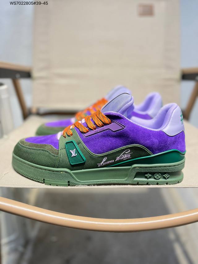 Guangdong Original Factory# Louis Vuitton Lv Louis Vuitton sneakers Ddd New Lv Trainer latest colorway sneakers L brand basketball shoes style sneakers. This shoe is designed by artistic director Virgil Abloh. The insole is made of microfiber and breathable British mesh fabric Ws7022805#39-45 DDD